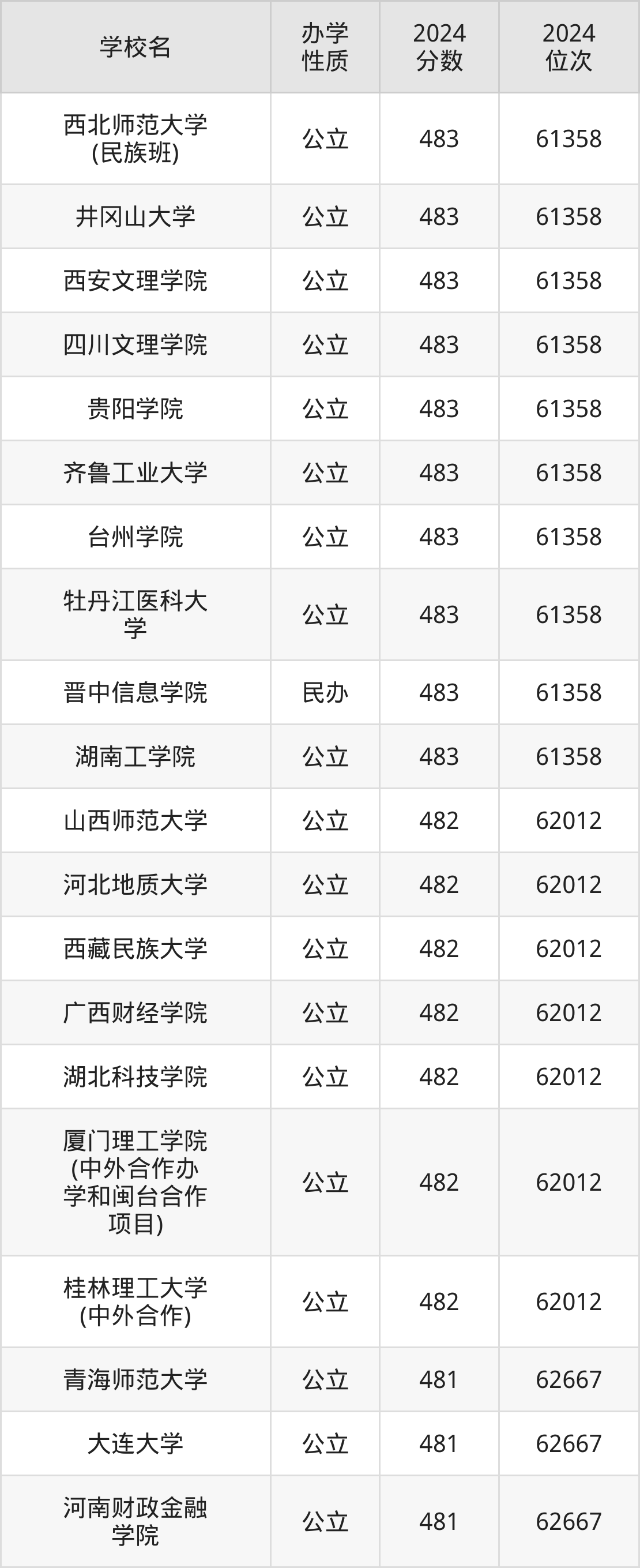 | 西北师范大学 (民族班) | 483 | 61358 |