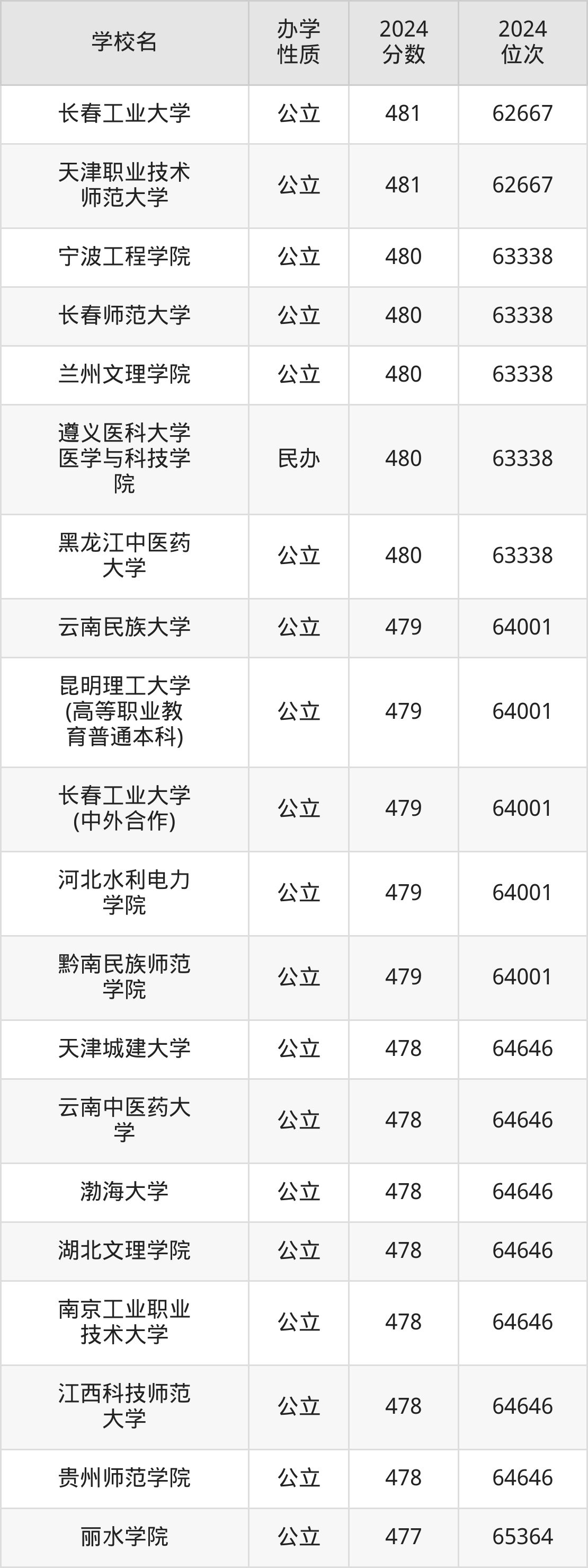 | 长春工业大学 (中外合作) | 479 | 64001 |