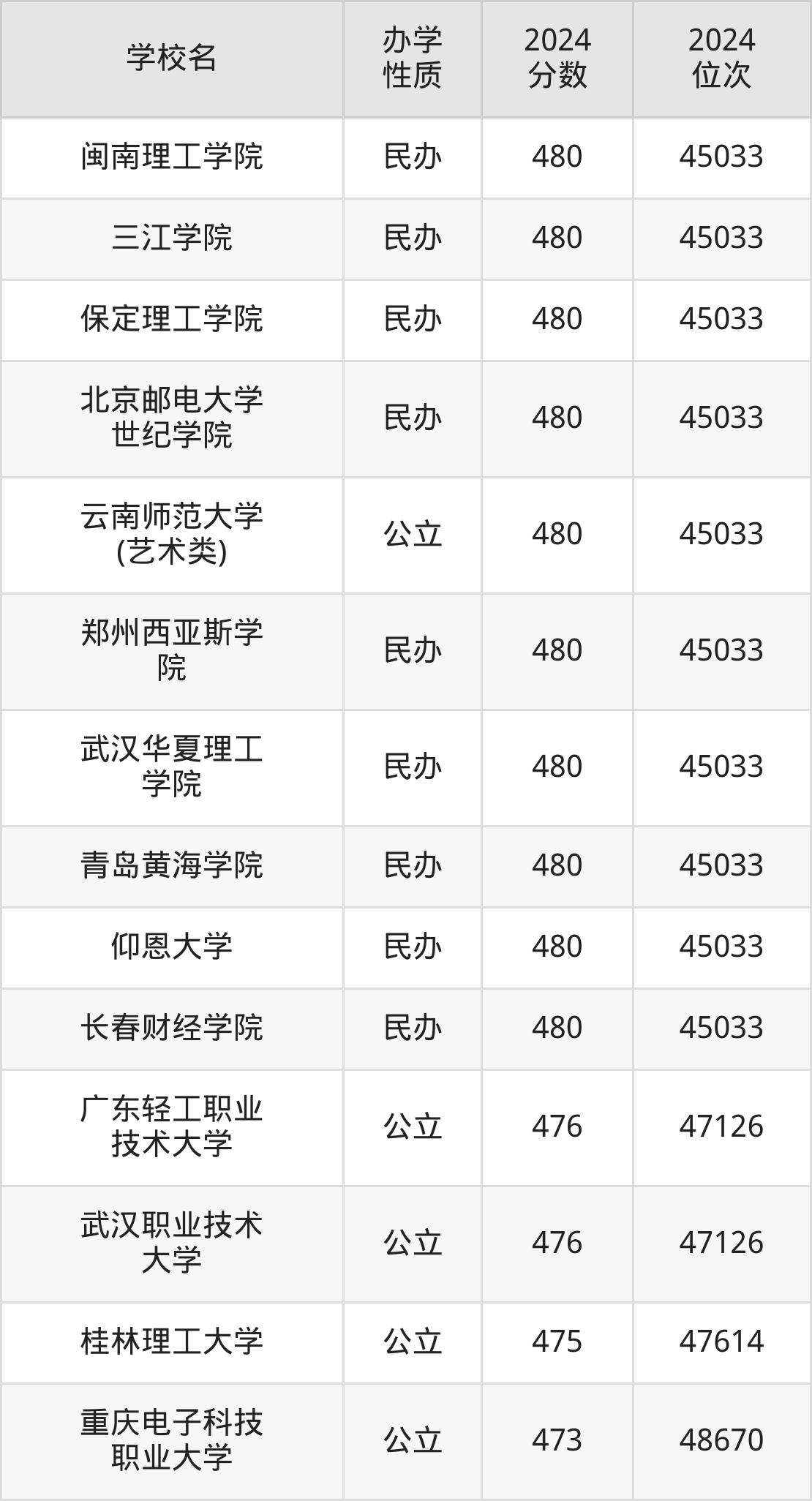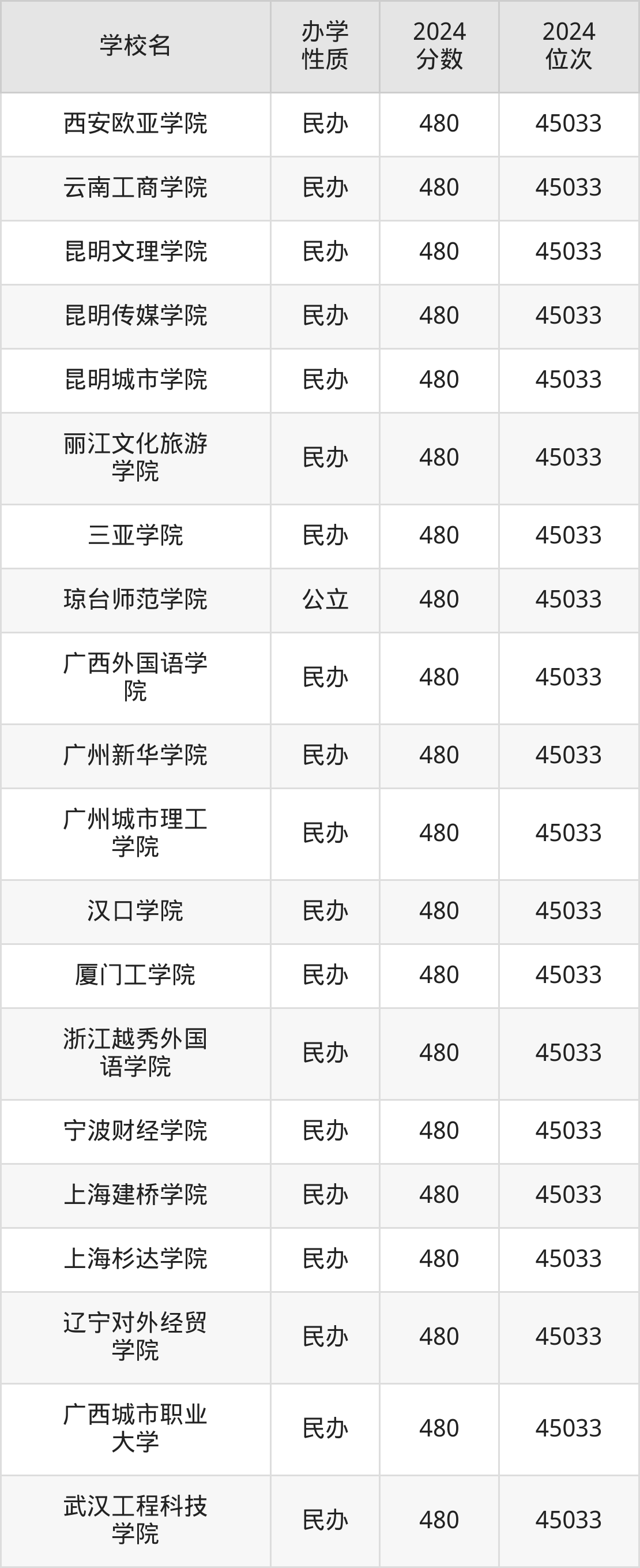 | 丽江文化旅游 学院 | 480 | 45033 |