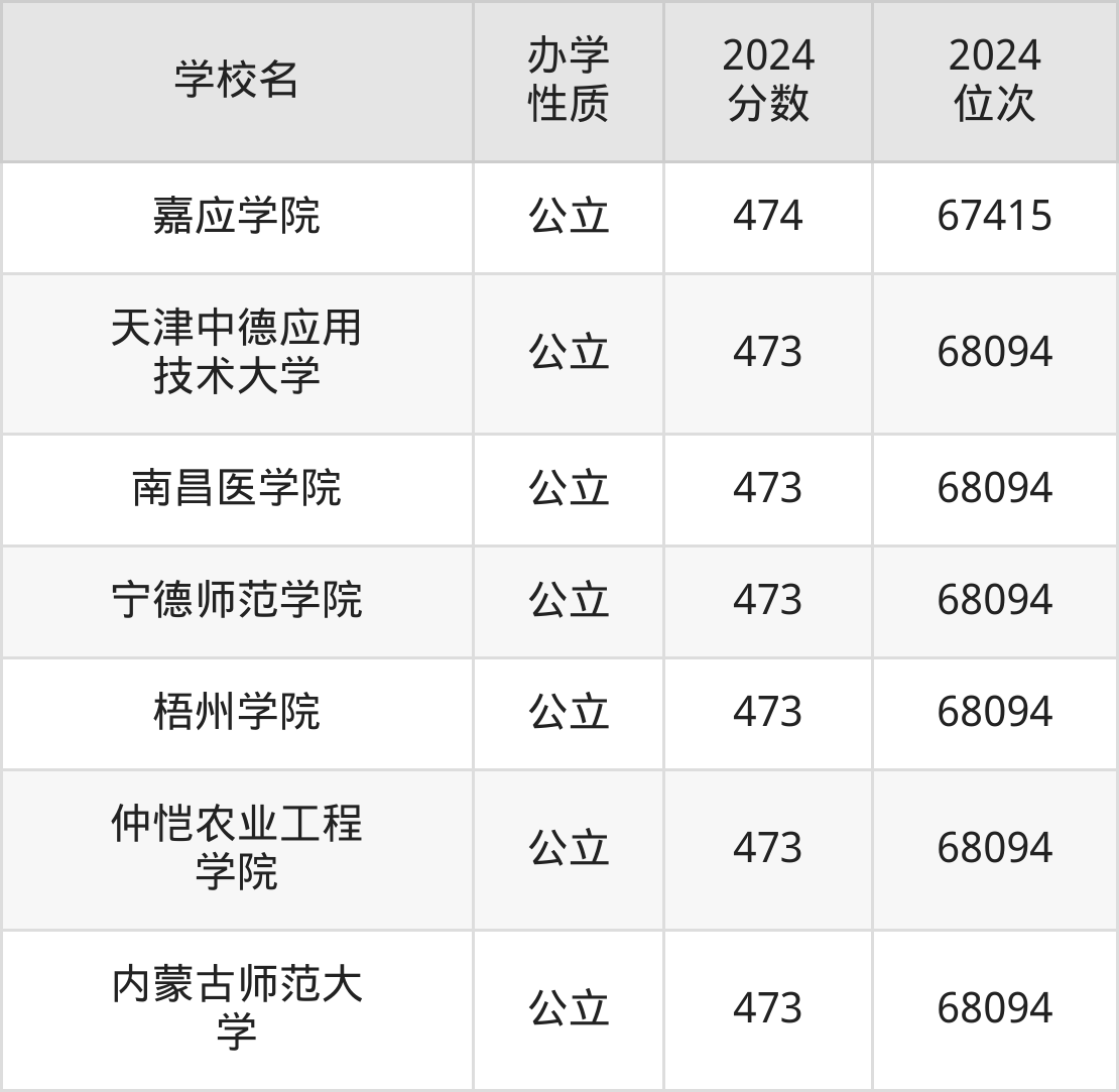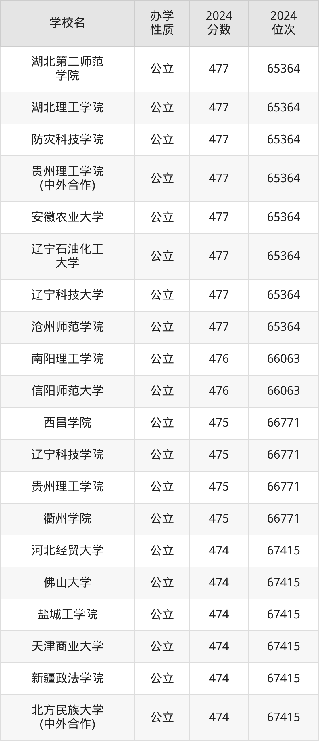 | 北方民族大学 (中外合作) | 474 | 67415 |