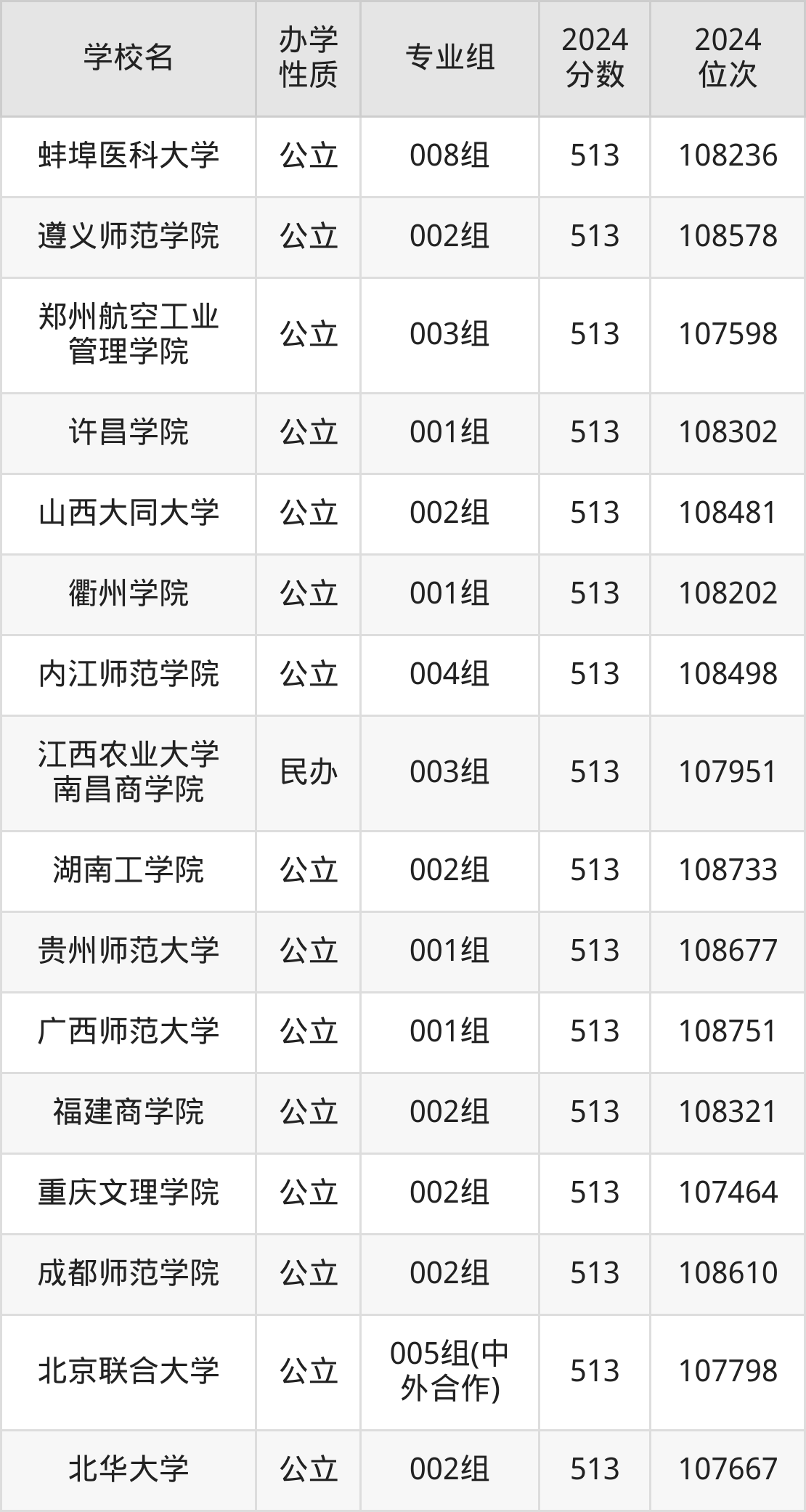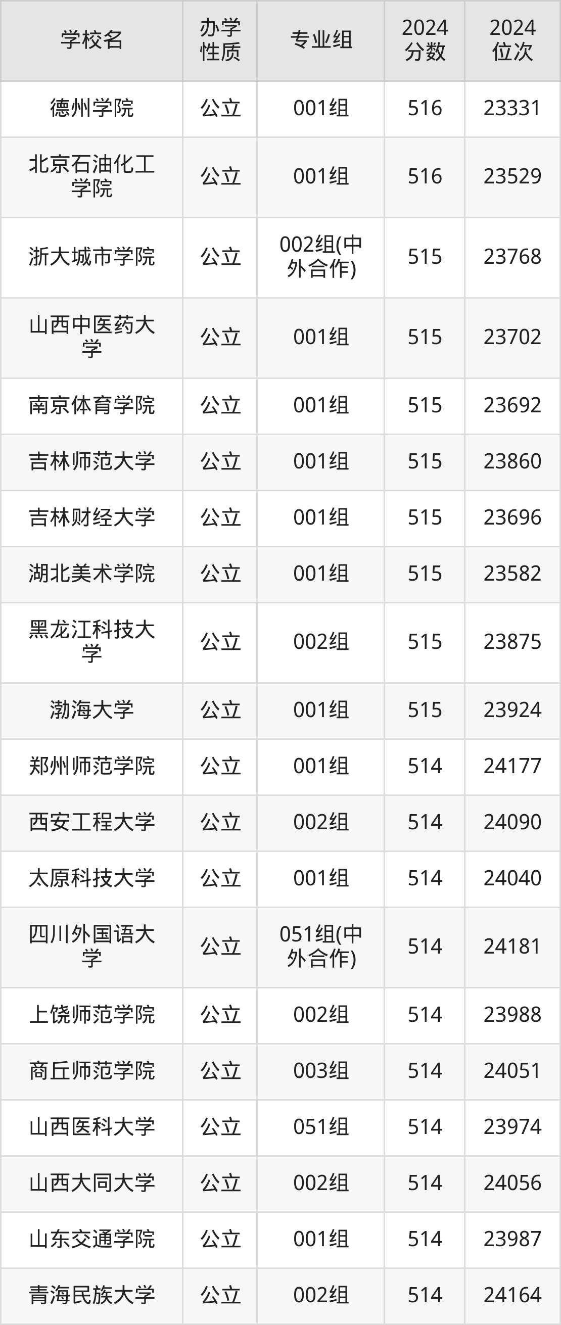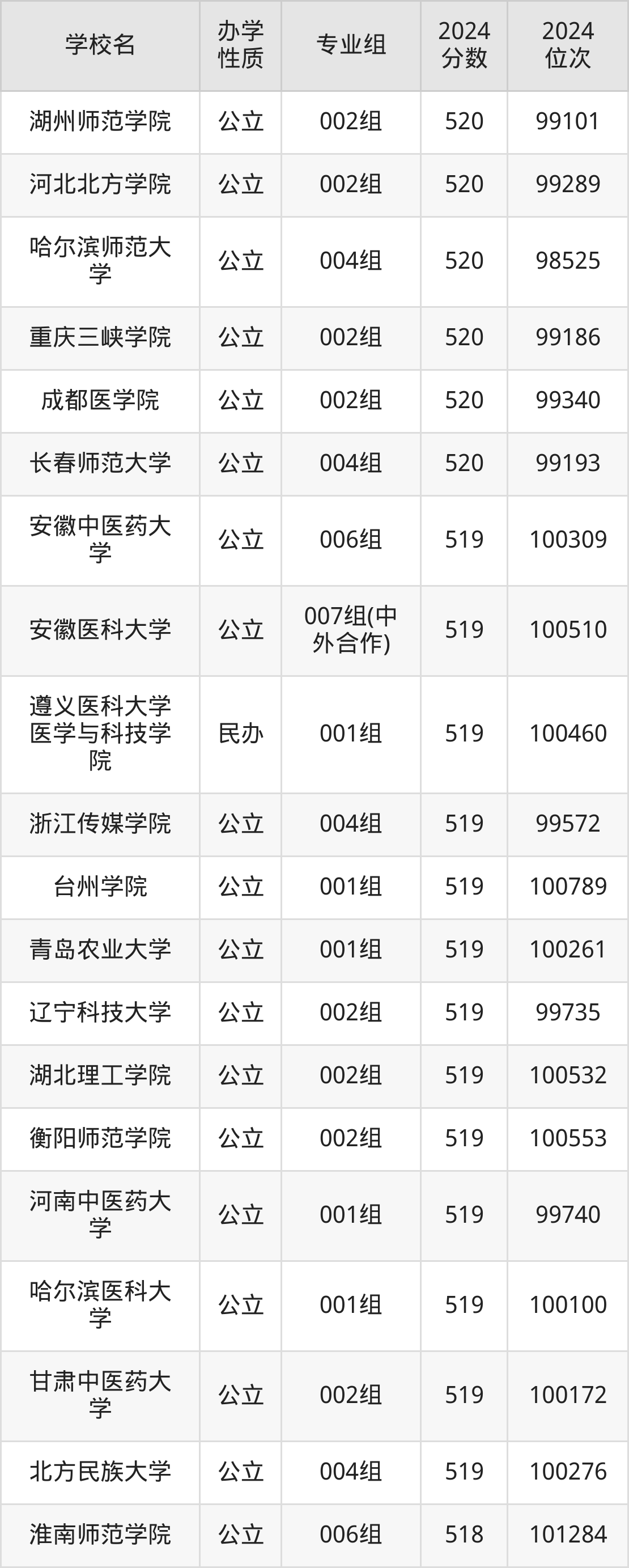| 学校名 | 专业组 | 2024 分数 | 2024 位次 |