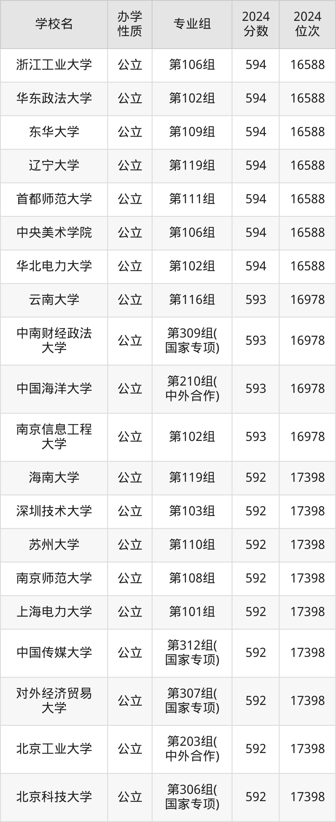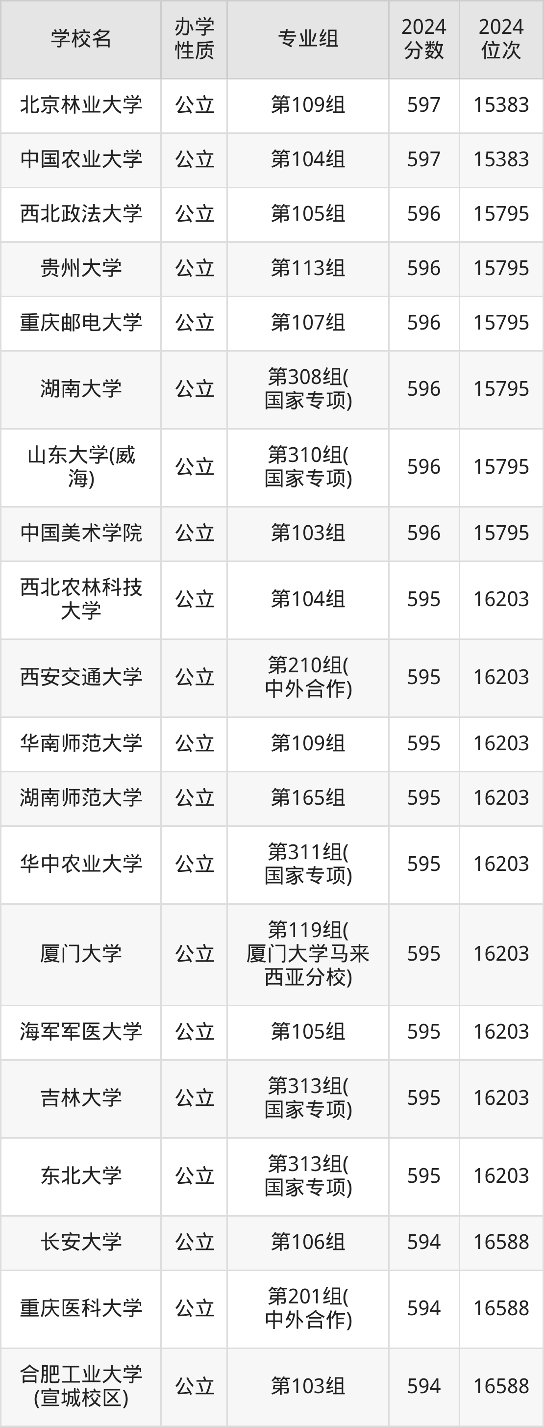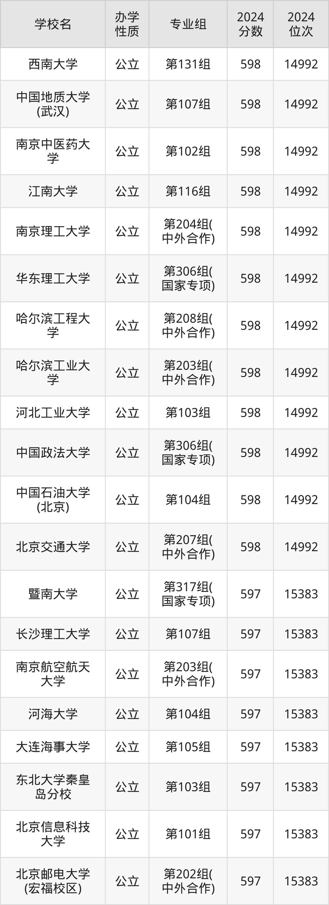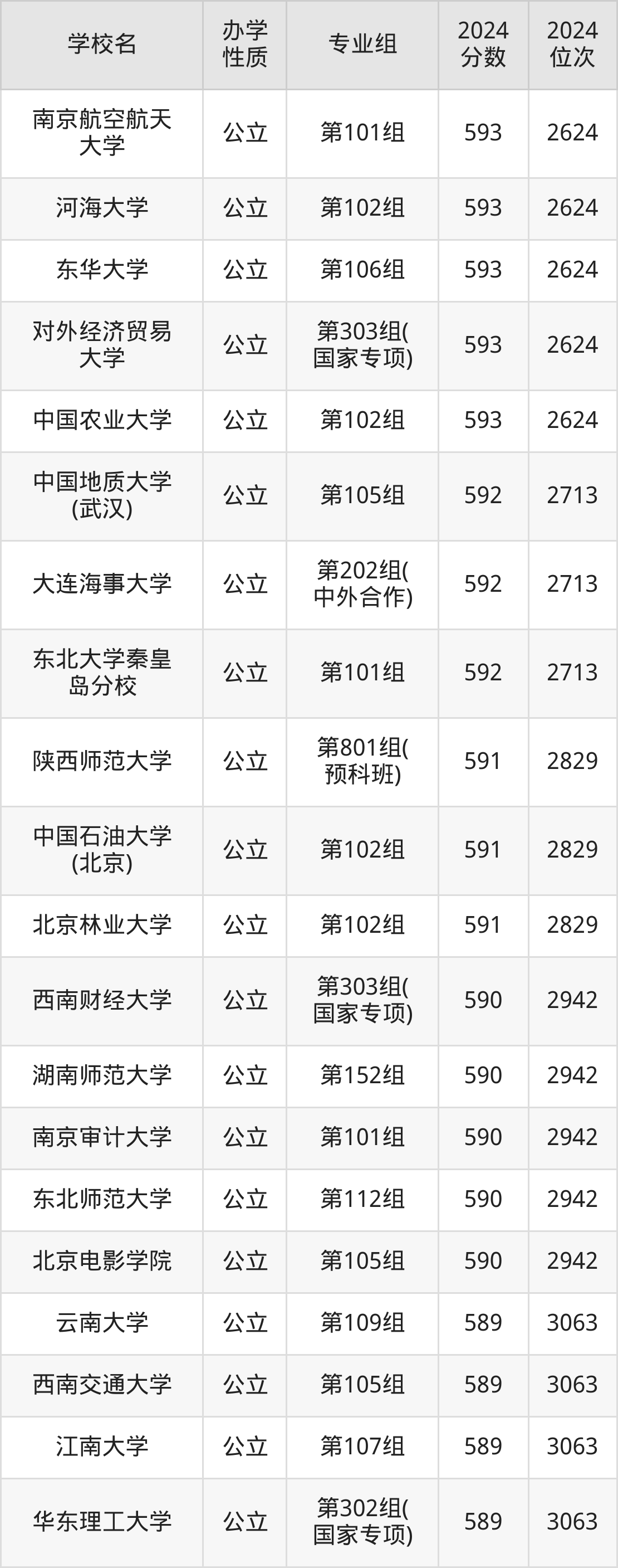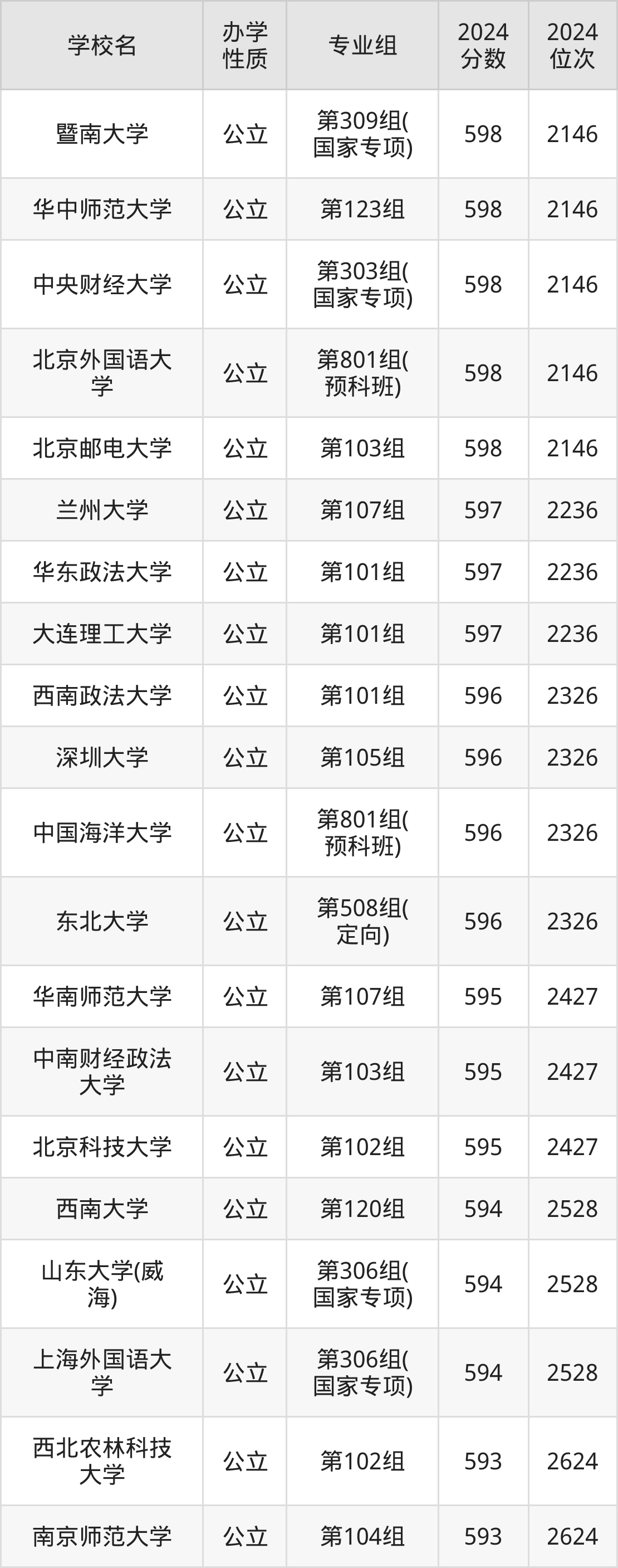 | 学校名 | 专业组 | 2024 分数 | 2024 位次 |