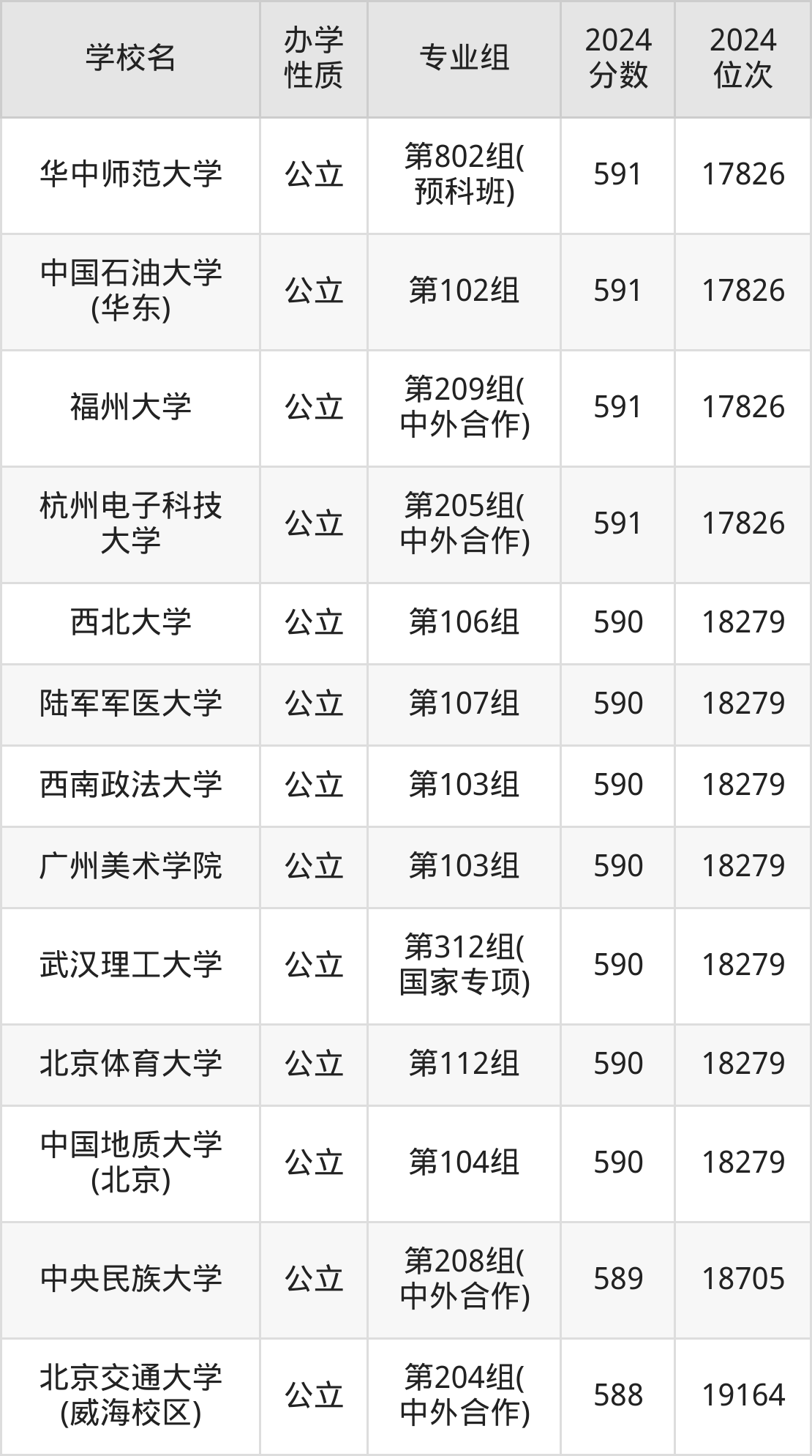 | 西北农林科技 大学 | 第801组( 预科班) | 590 | 18279 |