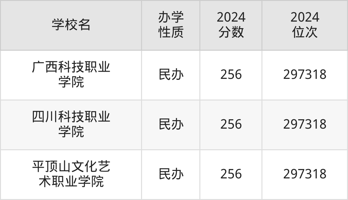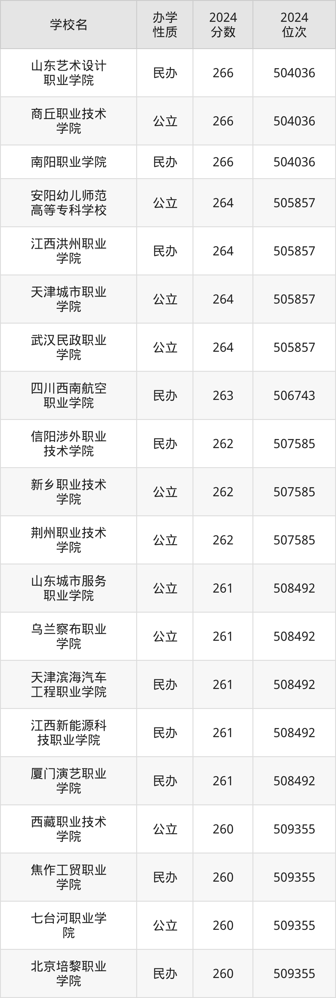 | 北京艺术传媒 职业学院 | 258 | 295137 |