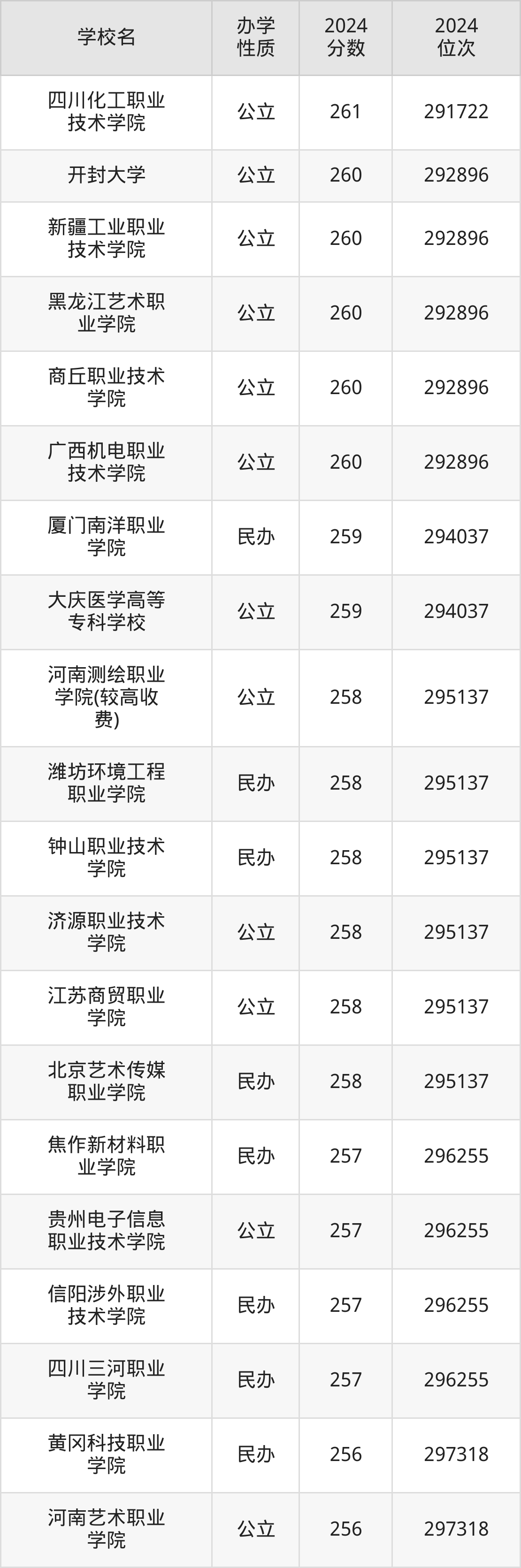| 焦作新材料职 业学院 | 257 | 296255 |