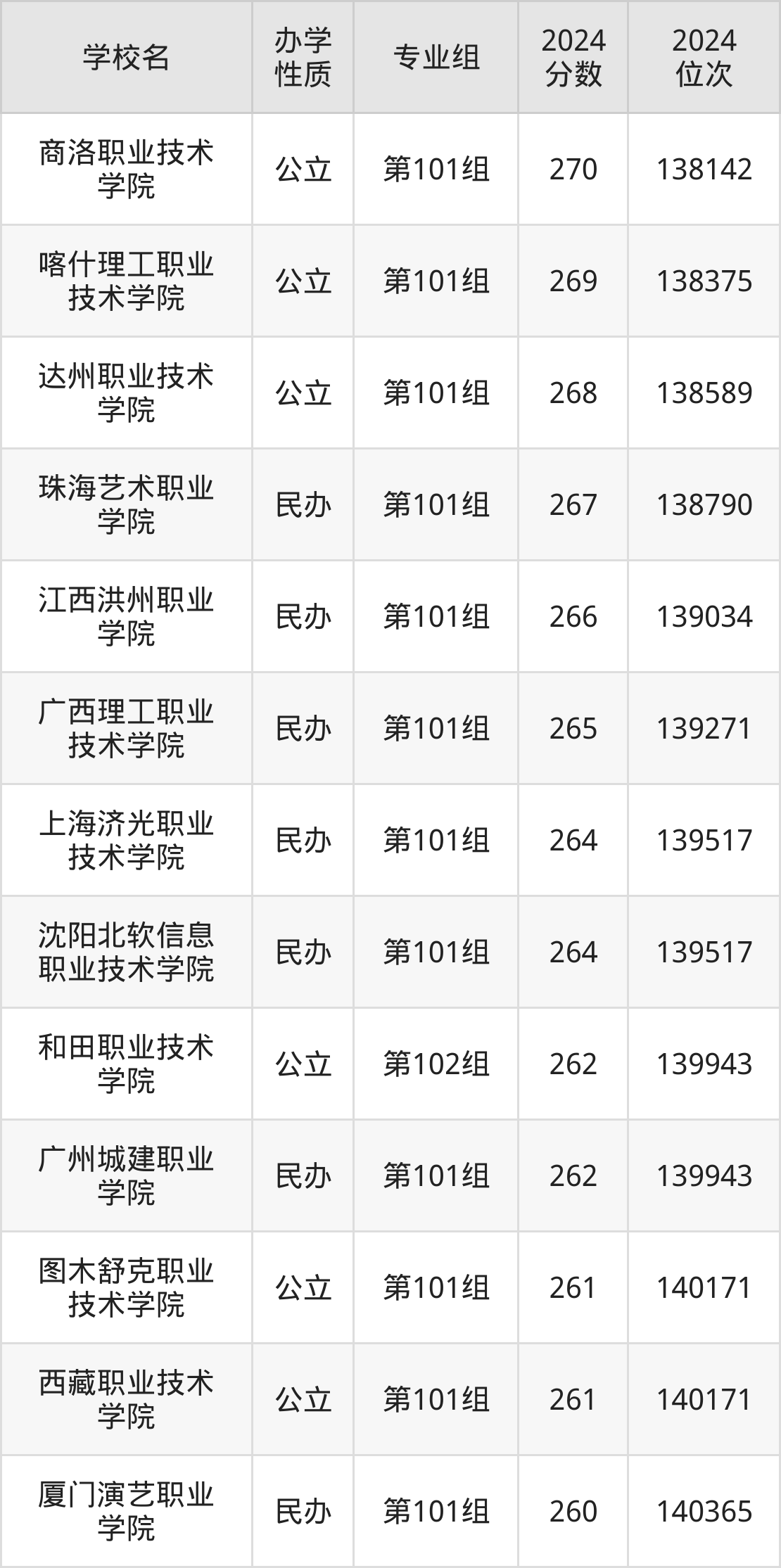 | 西藏职业技术 学院 | 第101组 | 261 | 140171 |