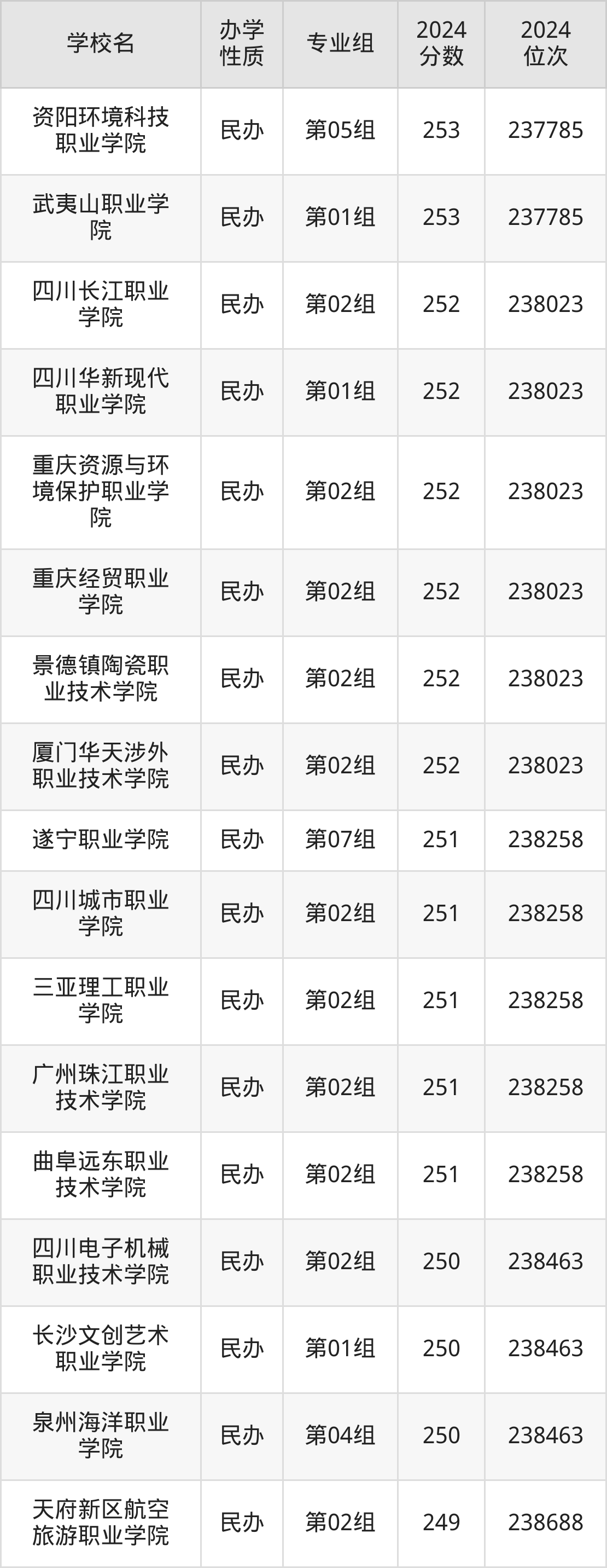 | 天府新区航空 旅游职业学院 | 第02组 | 249 | 238688 |
