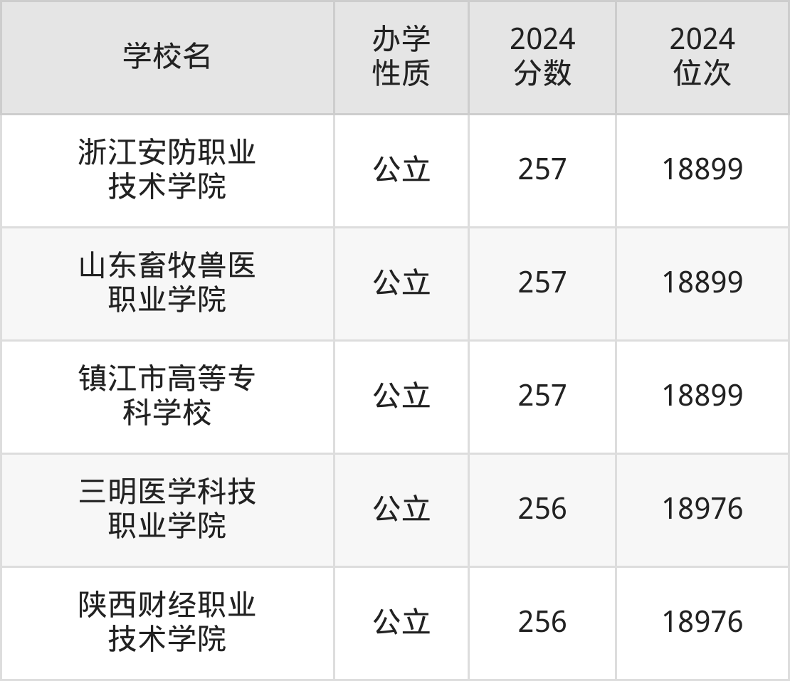 | 山东畜牧兽医 职业学院 | 257 | 18899 |