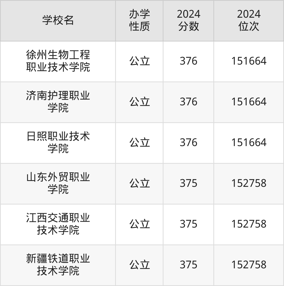 | 徐州生物工程 职业技术学院 | 376 | 151664 |