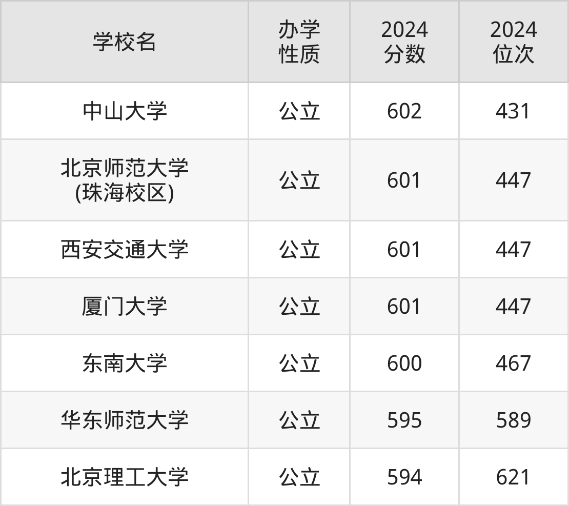 | 北京师范大学 (珠海校区) | 601 | 447 |