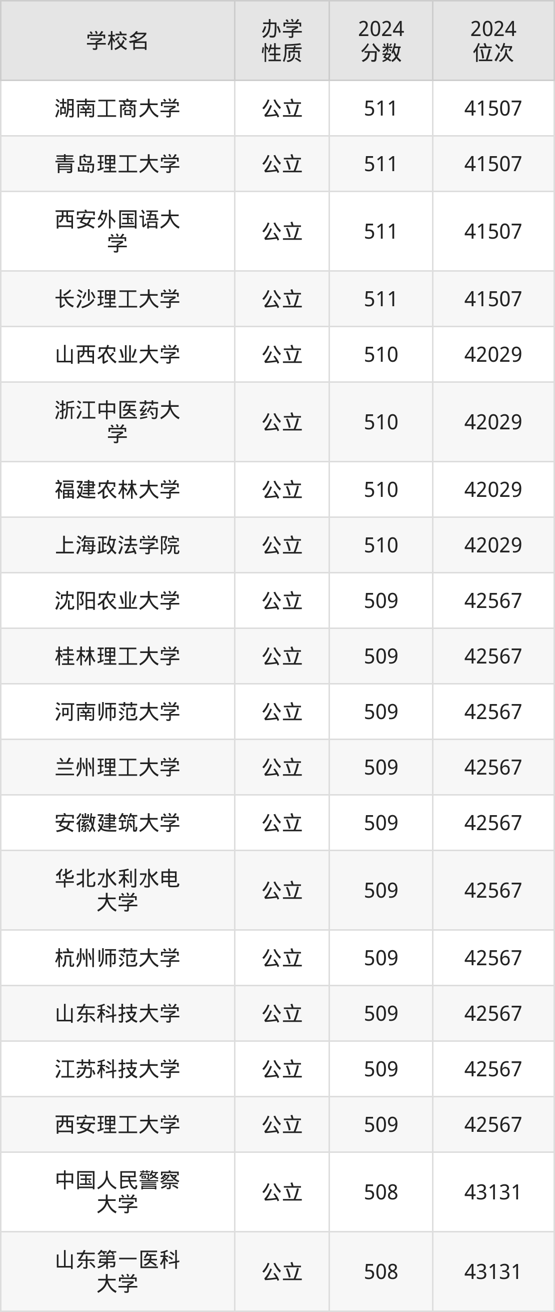 2024年山西理科506分考生能上湖南工商大学、青岛理工大学、西安外国语大学、长沙理工大学、山西农业大学等62所一本院校,具体录取分数线及位次为: