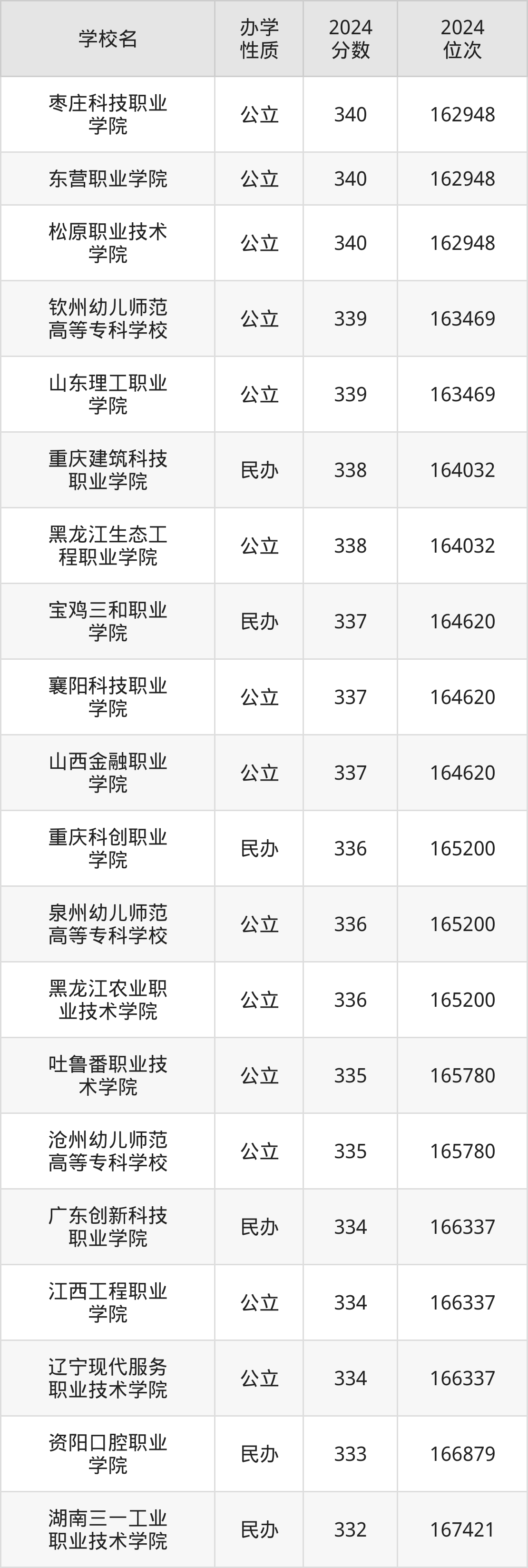 | 枣庄科技职业 学院 | 340 | 162948 |