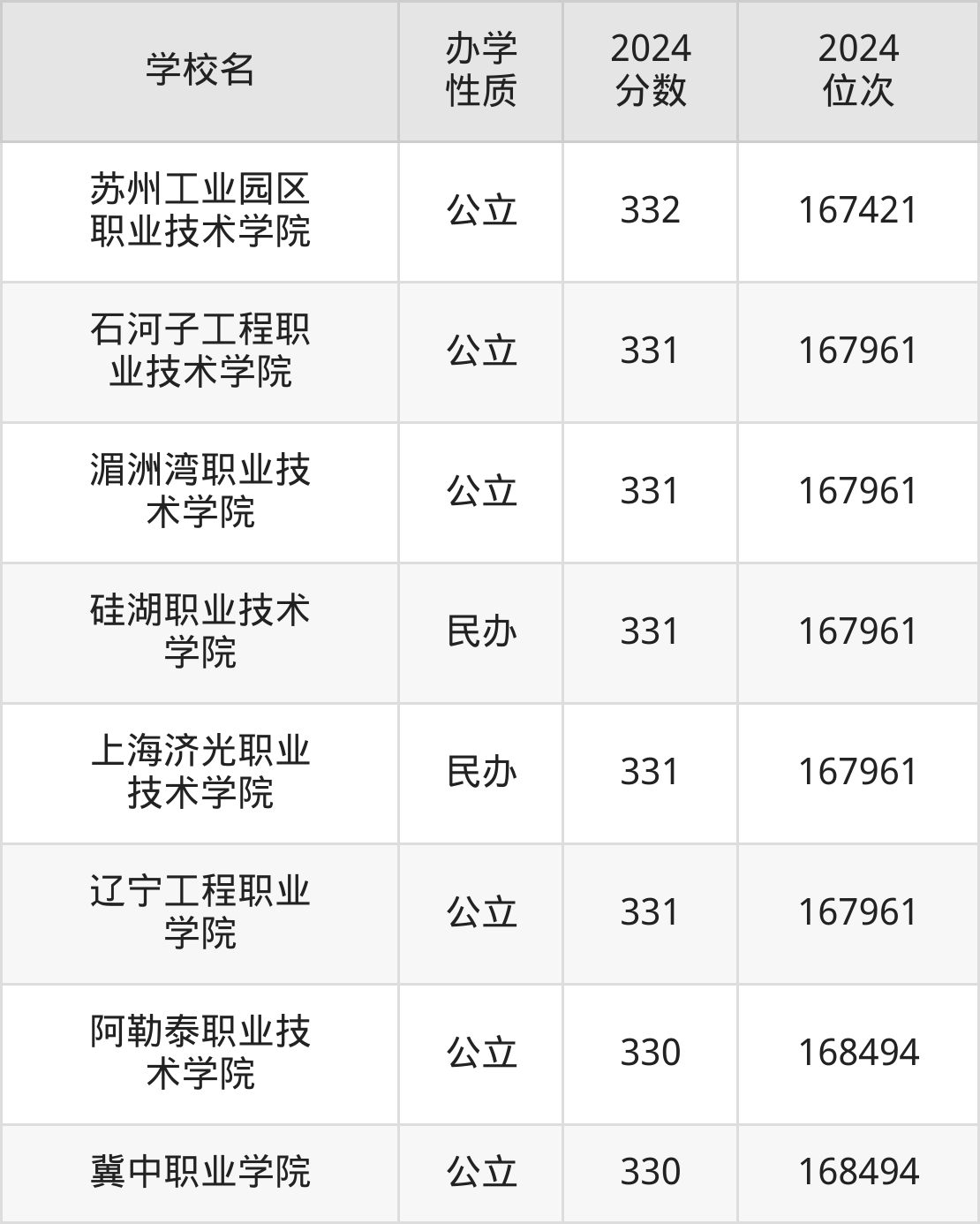 | 江西工程职业 学院 | 334 | 166337 |