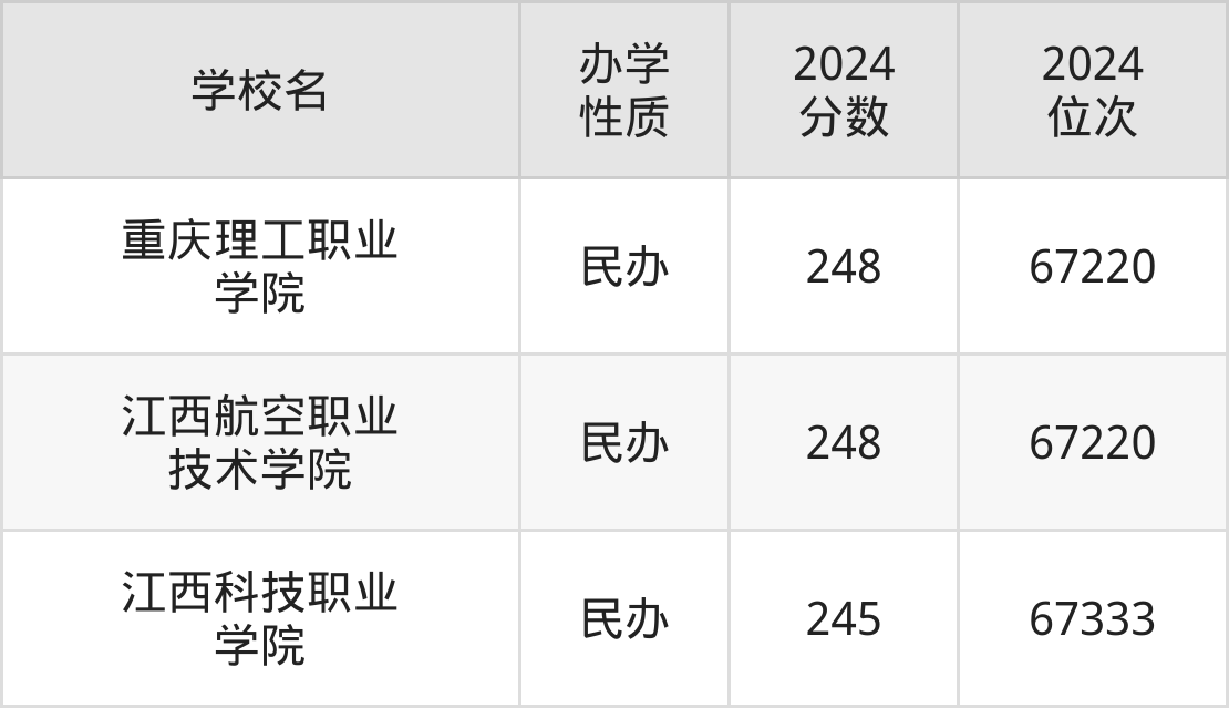 | 江西航空职业 技术学院 | 248 | 67220 |