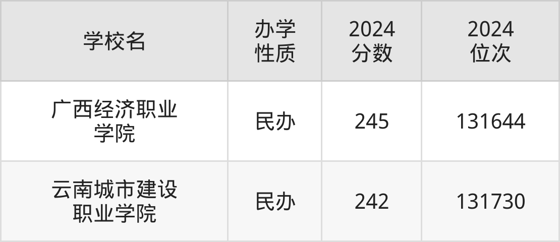 | 广西经济职业 学院 | 245 | 131644 |