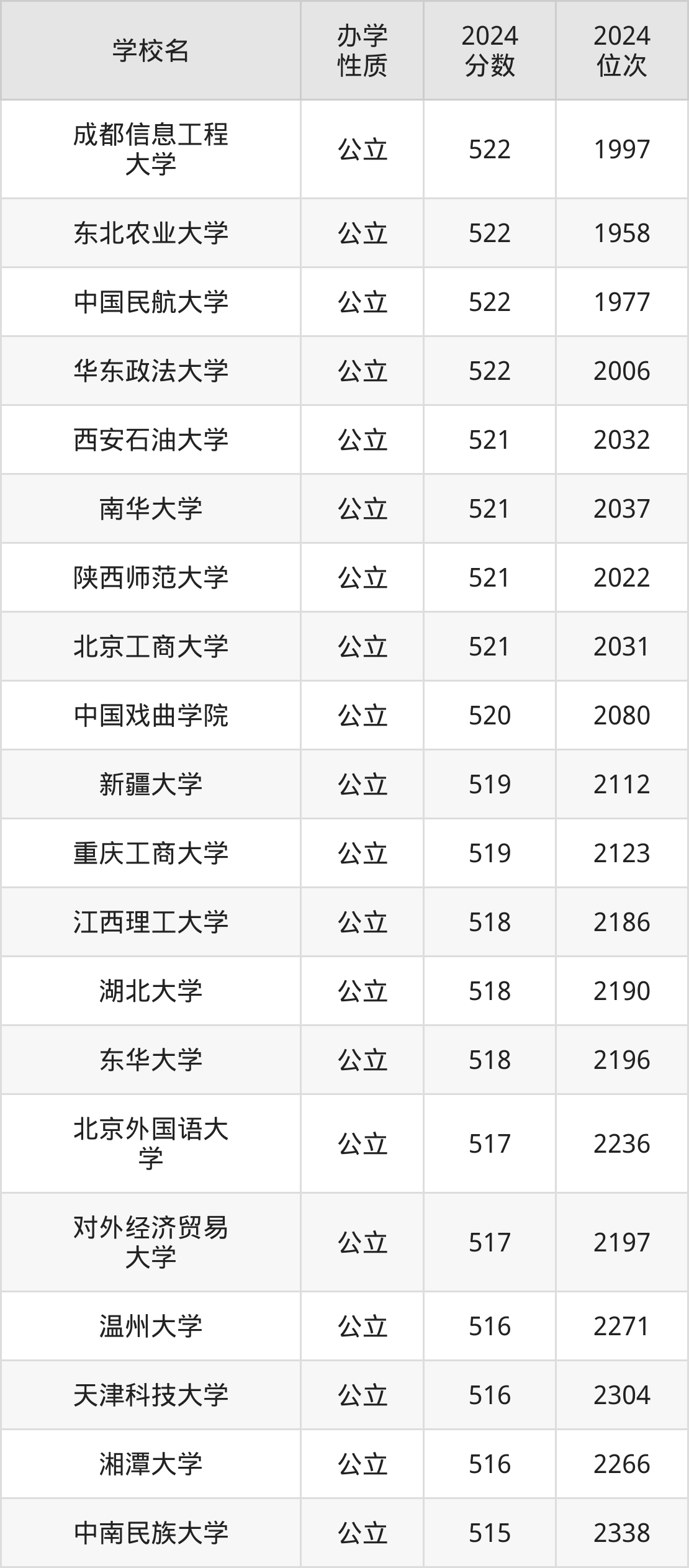 | 成都信息工程 大学 | 522 | 1997 |