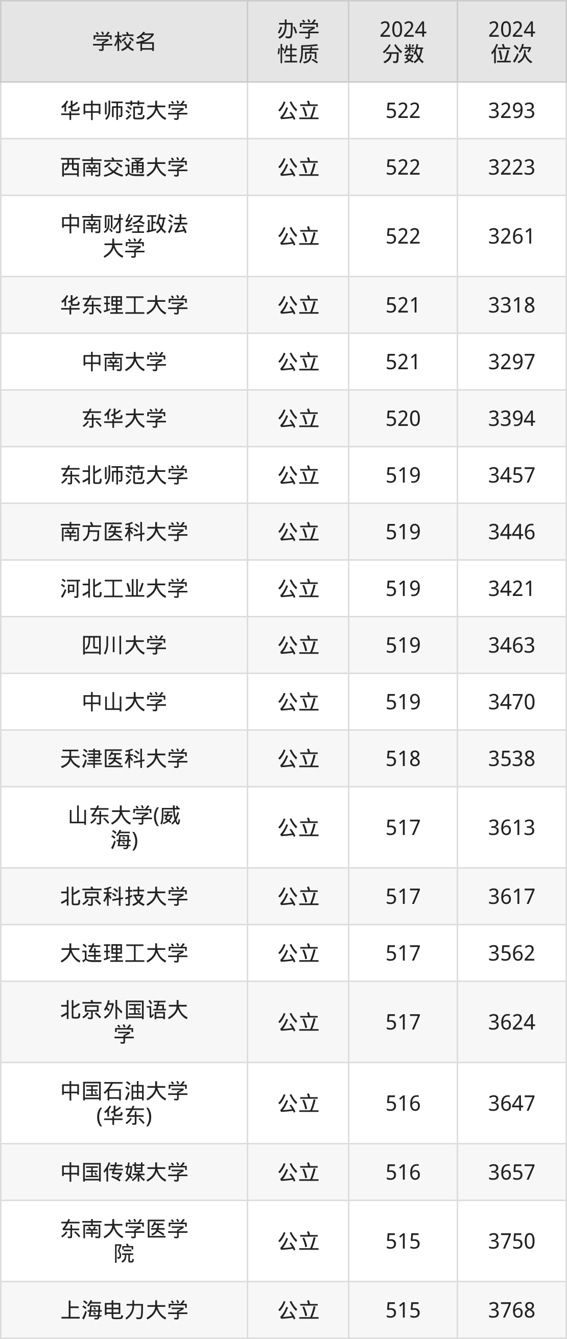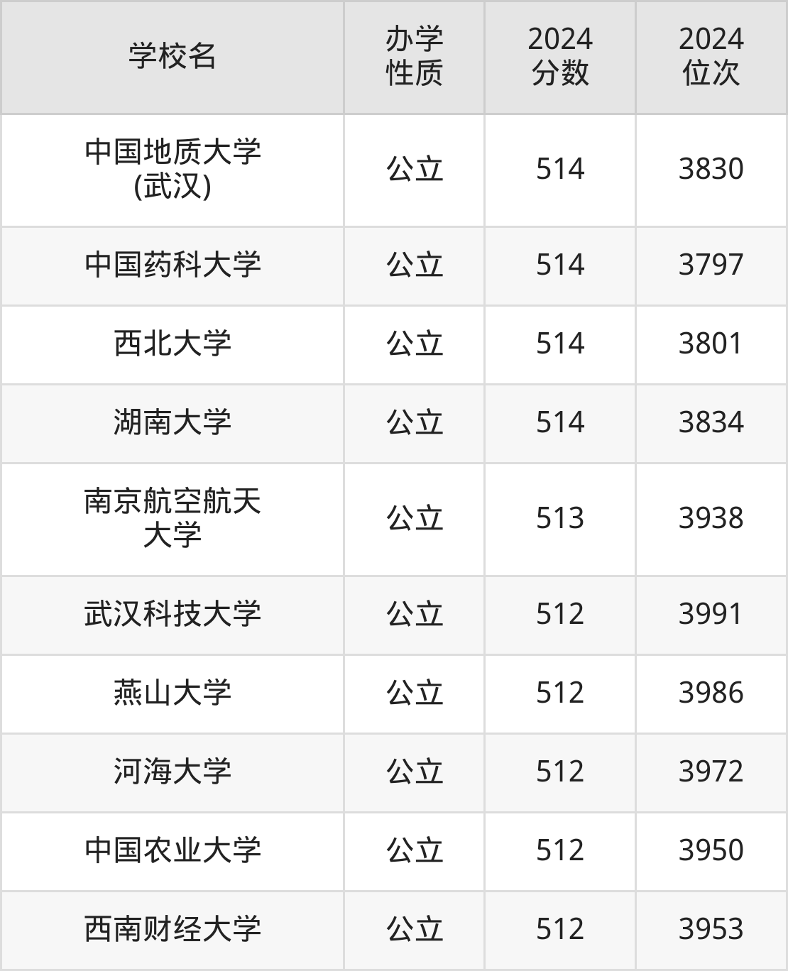 | 学校名 | 2024 分数 | 2024 位次 |