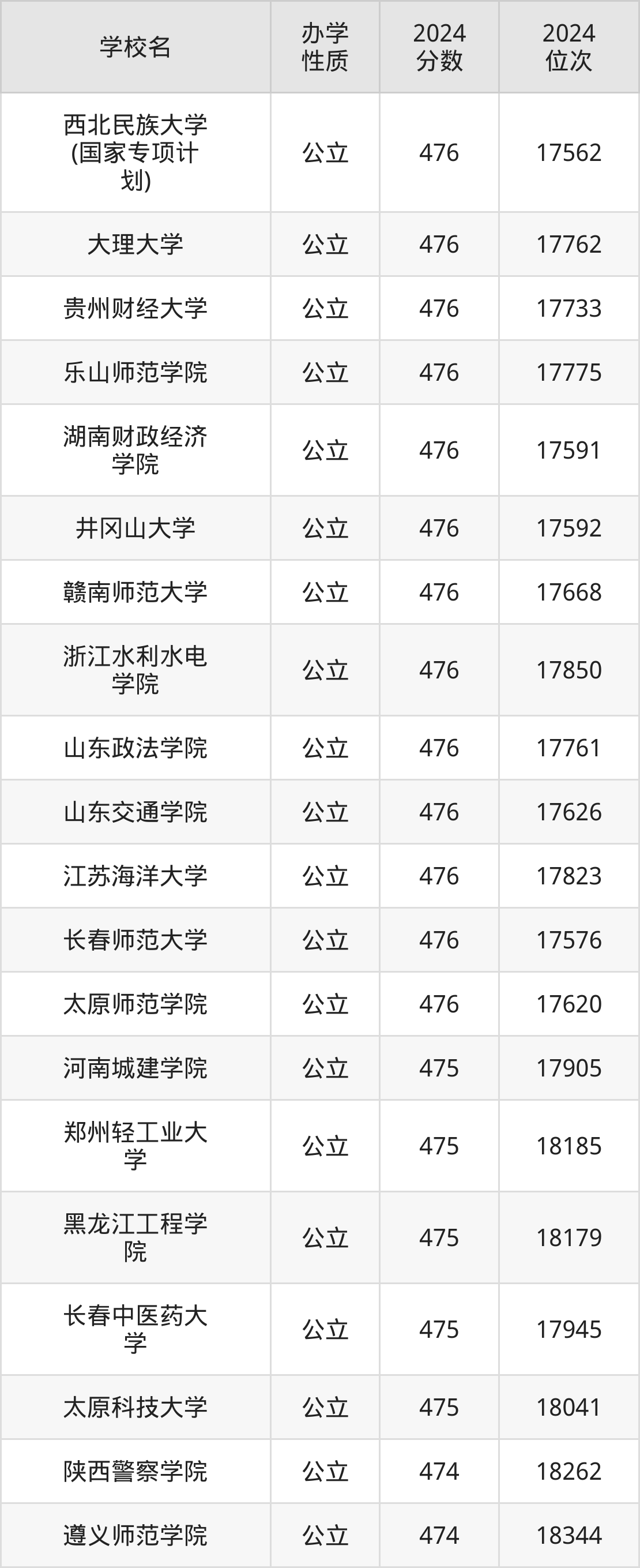 2024年陕西文科471分考生能上西北民族大学(国家专项计划)、大理大学、贵州财经大学、乐山师范学院、湖南财政经济学院等96所二本院校,具体录取分数线及位次为:
