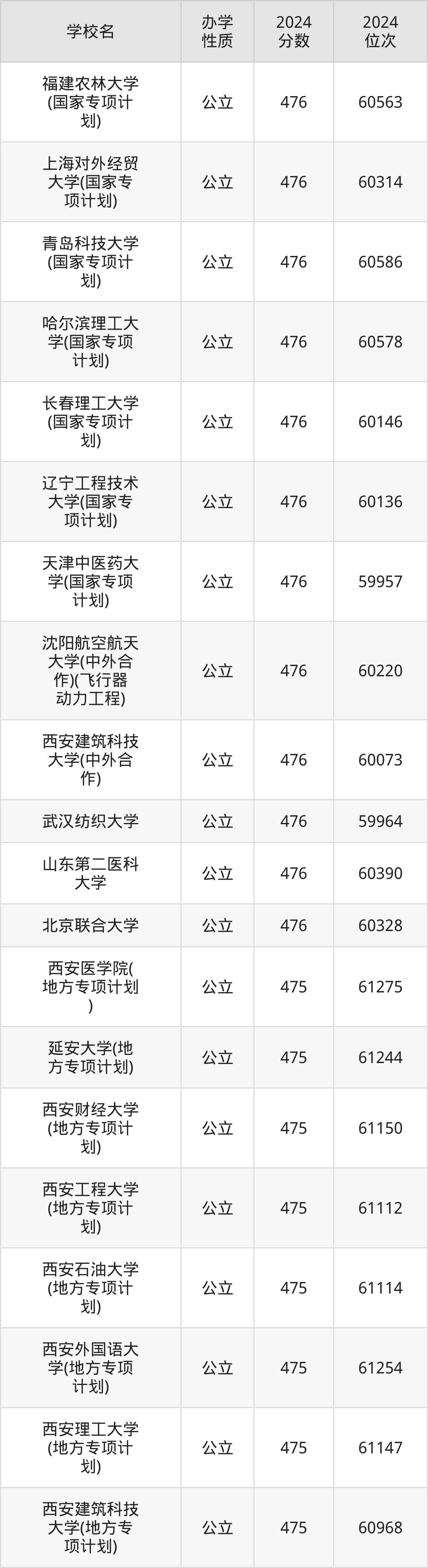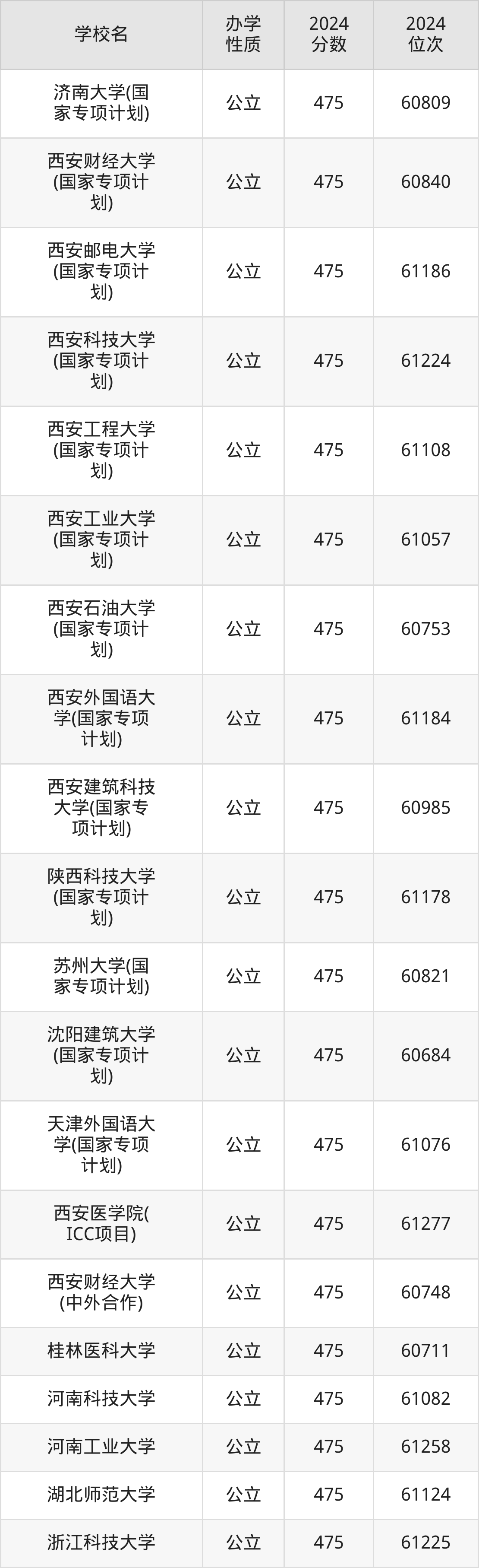 为了方便2025届考生了解自己能上哪些大学,本文也整理出了陕西471分左右能上的所有大学名单,供2025年考生参考。
