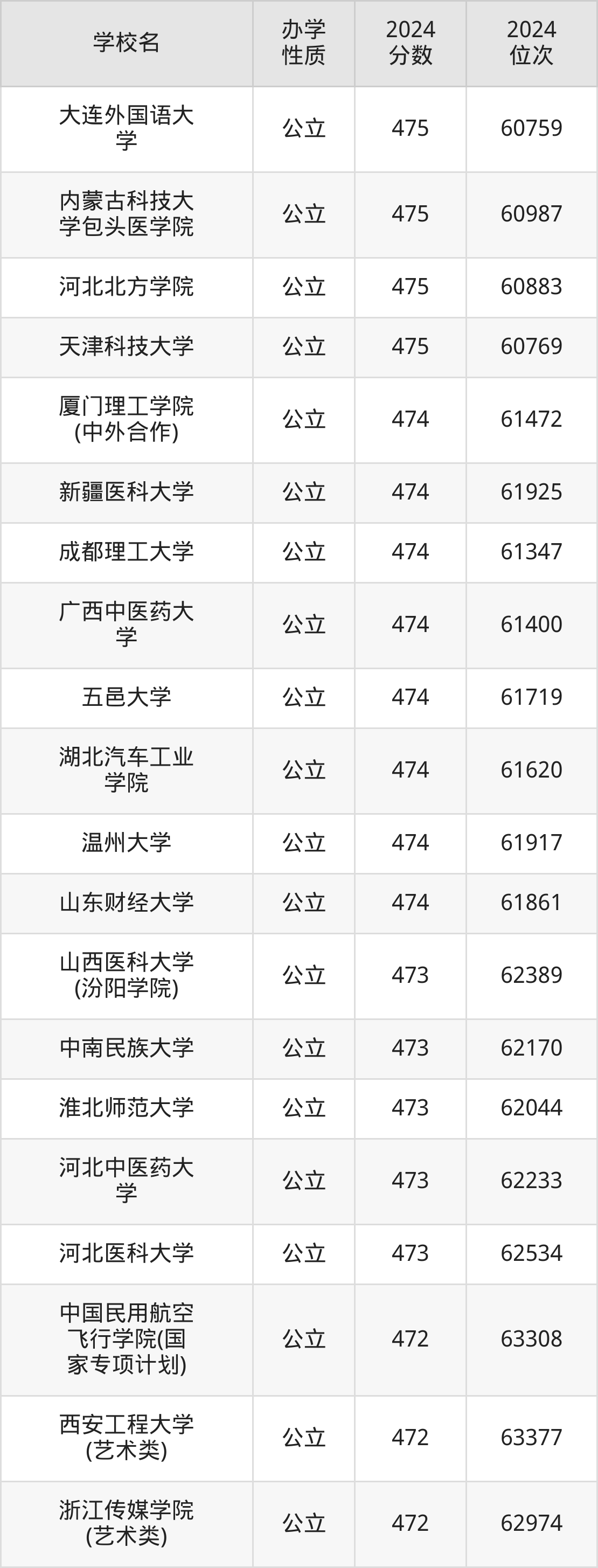 | 浙江传媒学院 (艺术类) | 472 | 62974 |