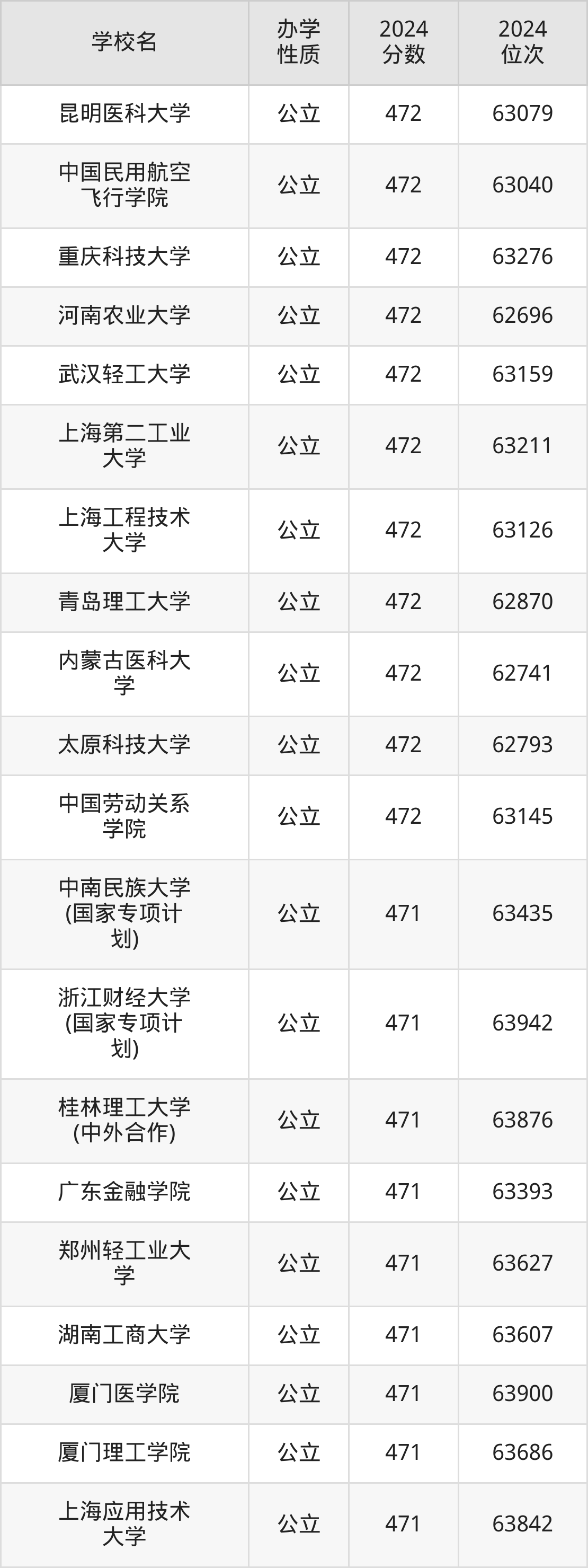 | 桂林理工大学 (中外合作) | 471 | 63876 |
