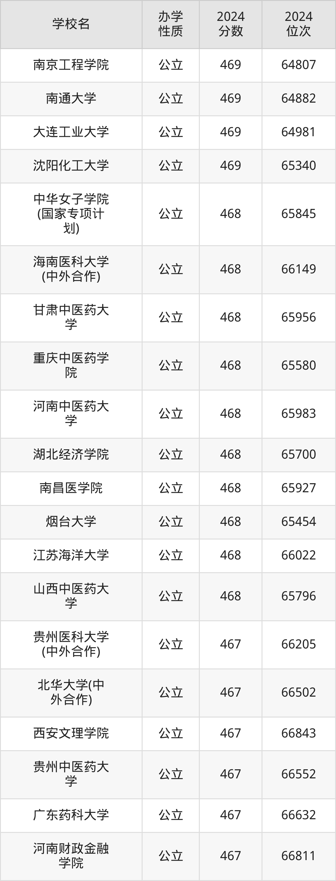 | 贵州医科大学 (中外合作) | 467 | 66205 |