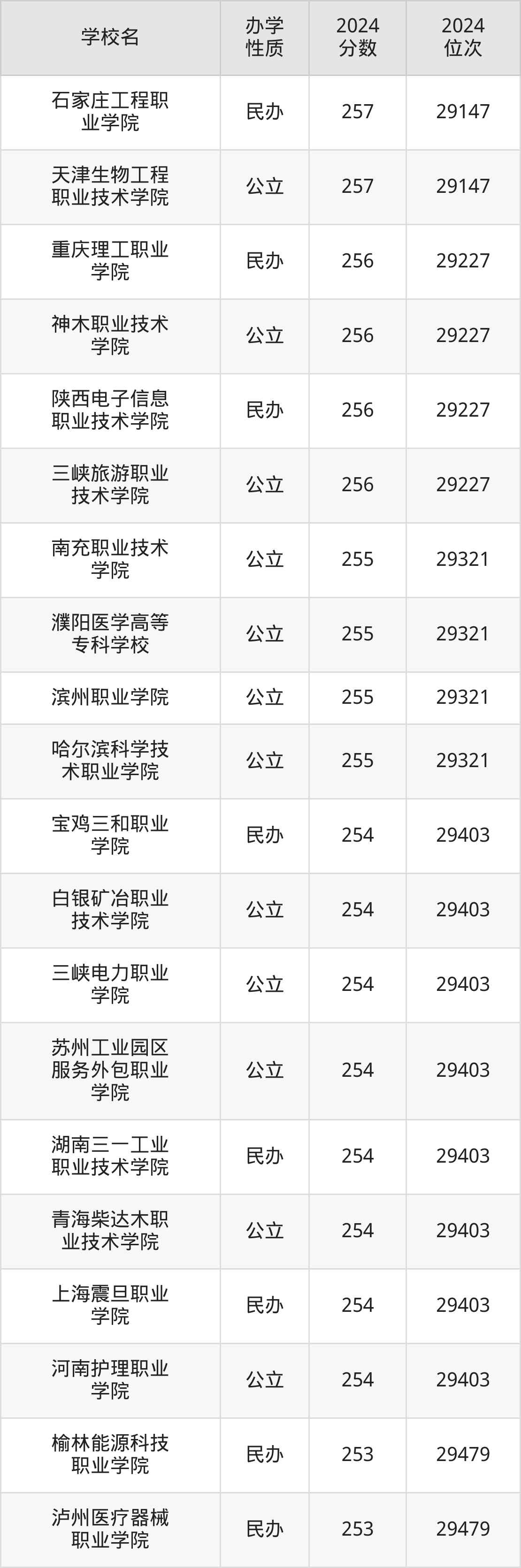 | 三峡旅游职业 技术学院 | 256 | 29227 |