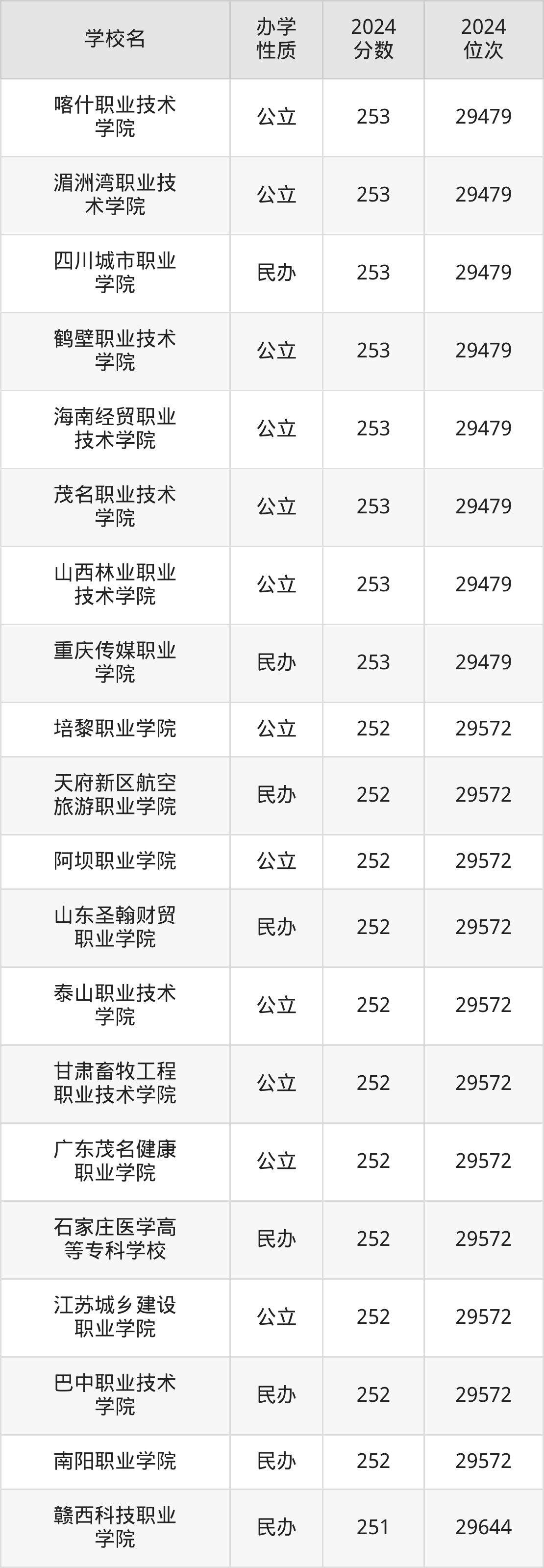 | 重庆传媒职业 学院 | 253 | 29479 |