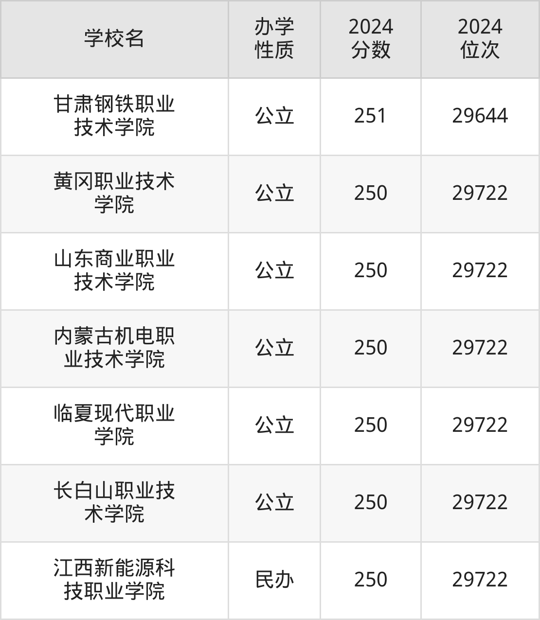 | 江西新能源科 技职业学院 | 250 | 29722 |