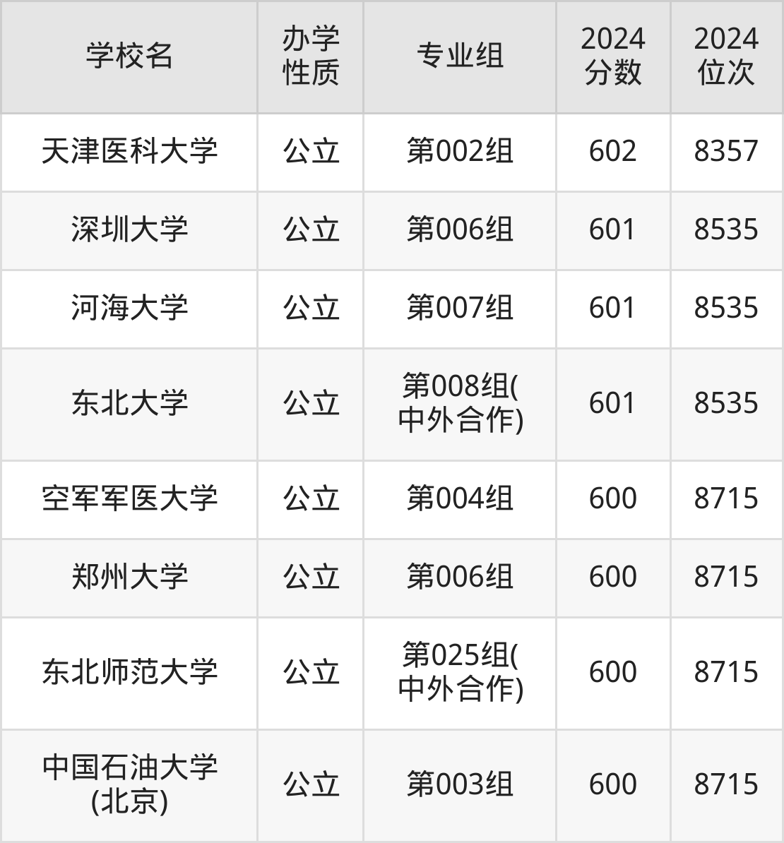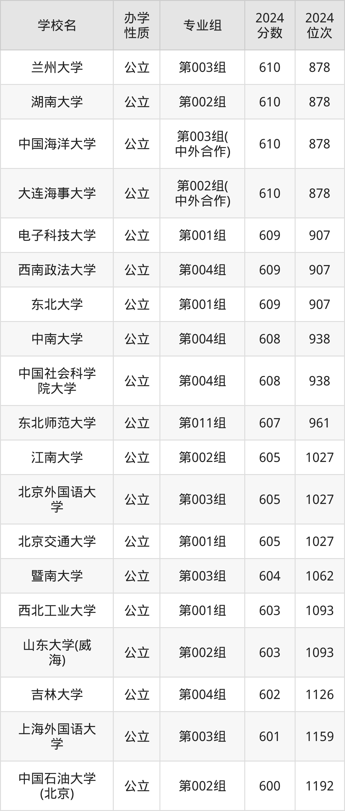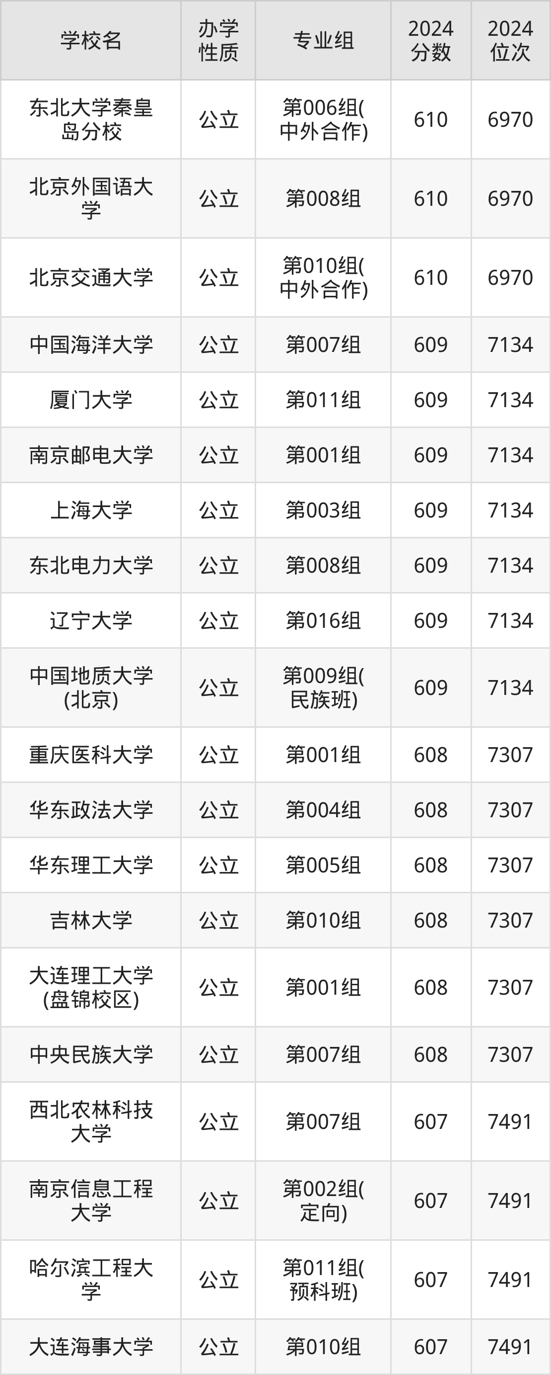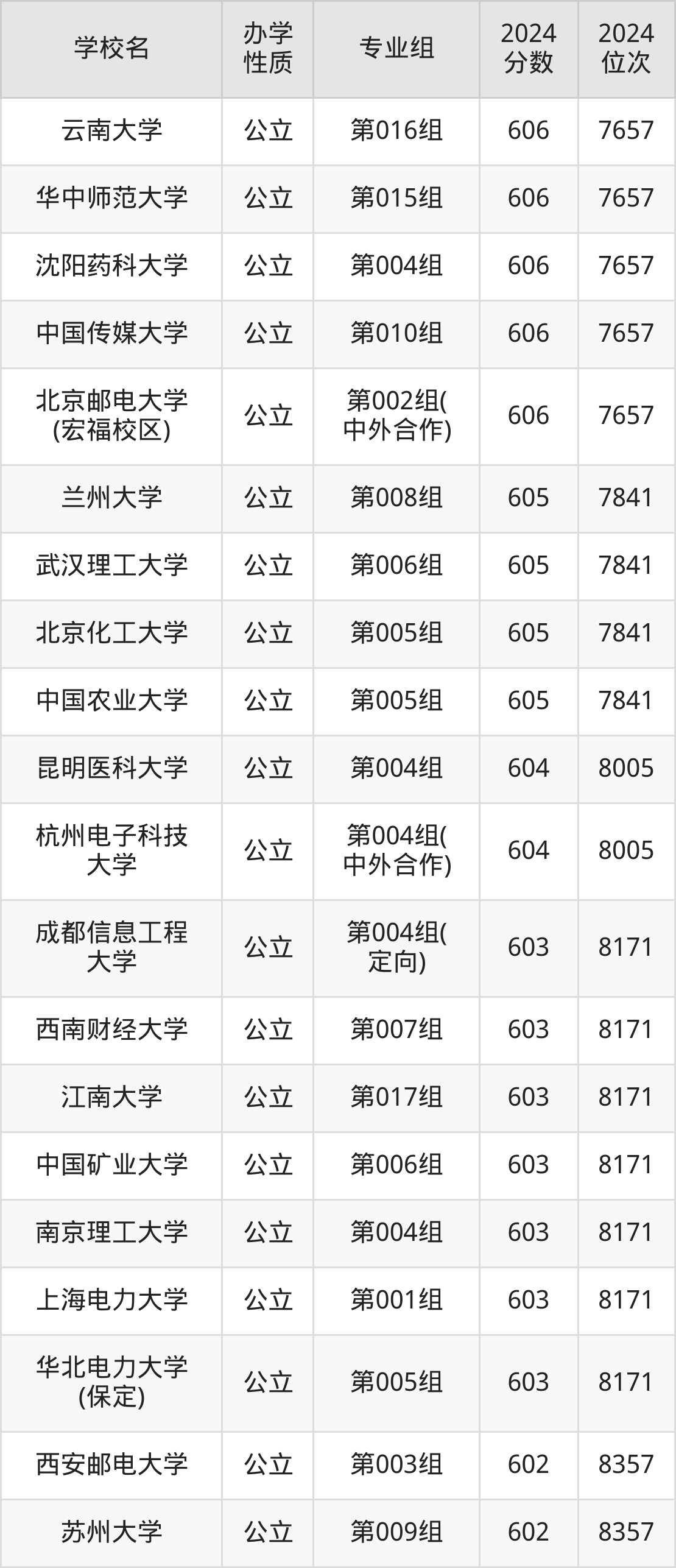 | 学校名 | 专业组 | 2024 分数 | 2024 位次 |