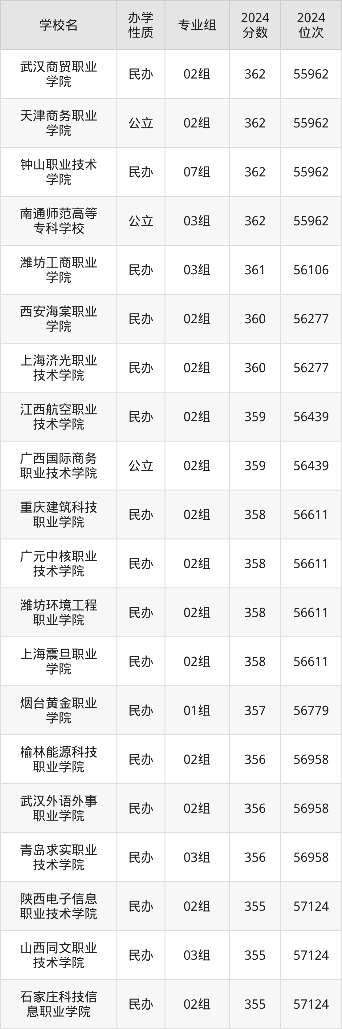 | 天津商务职业 学院 | 02组 | 362 | 55962 |