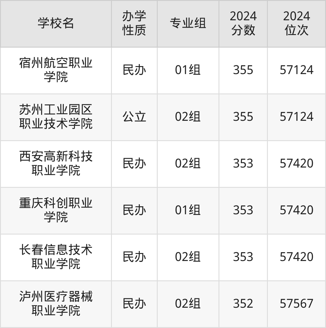 | 宿州航空职业 学院 | 01组 | 355 | 57124 |