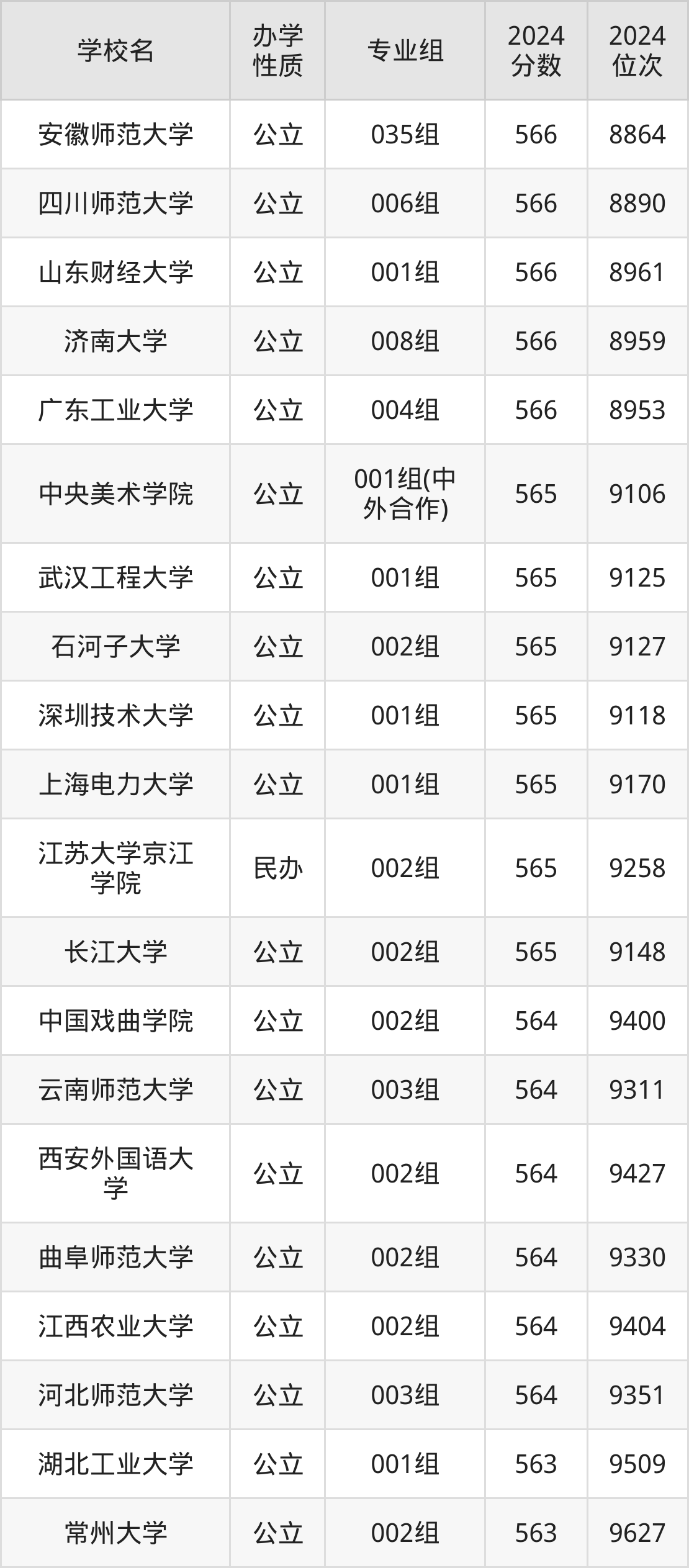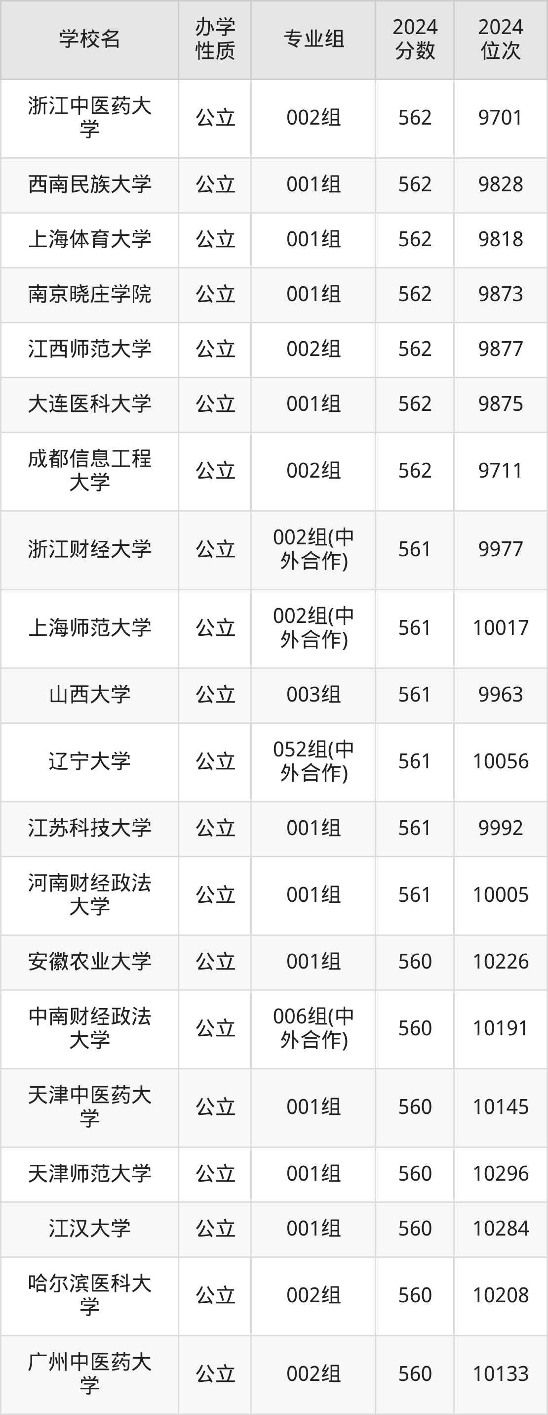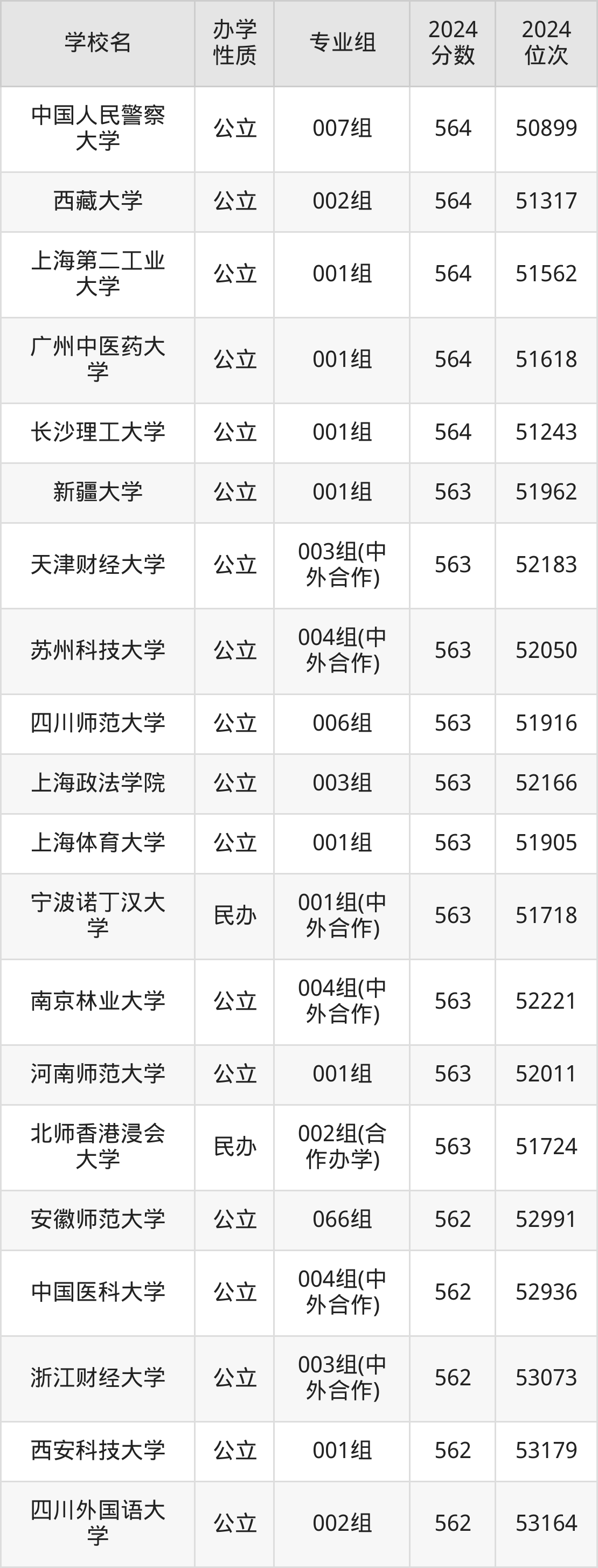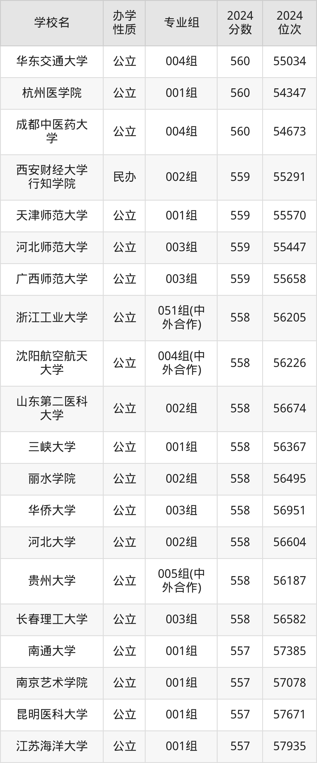 | 学校名 | 专业组 | 2024 分数 | 2024 位次 |