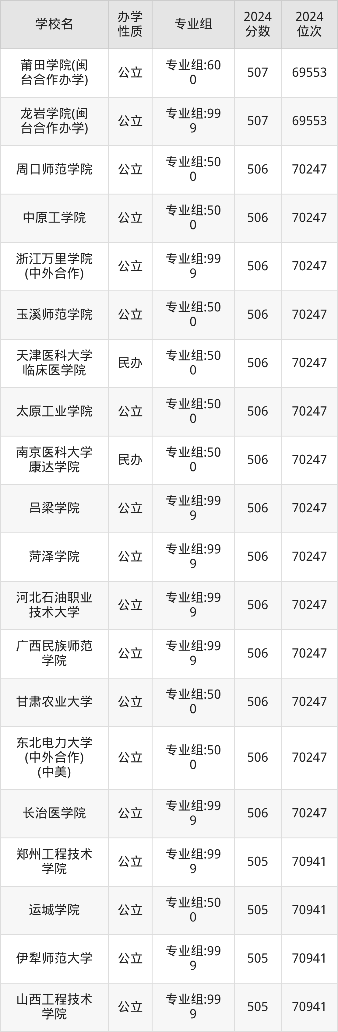 根据2024年福建的录取数据来看,507分不能上一本大学,但可以上其它大学,本文已经在下方整理出了福建507分能上的大学名单。