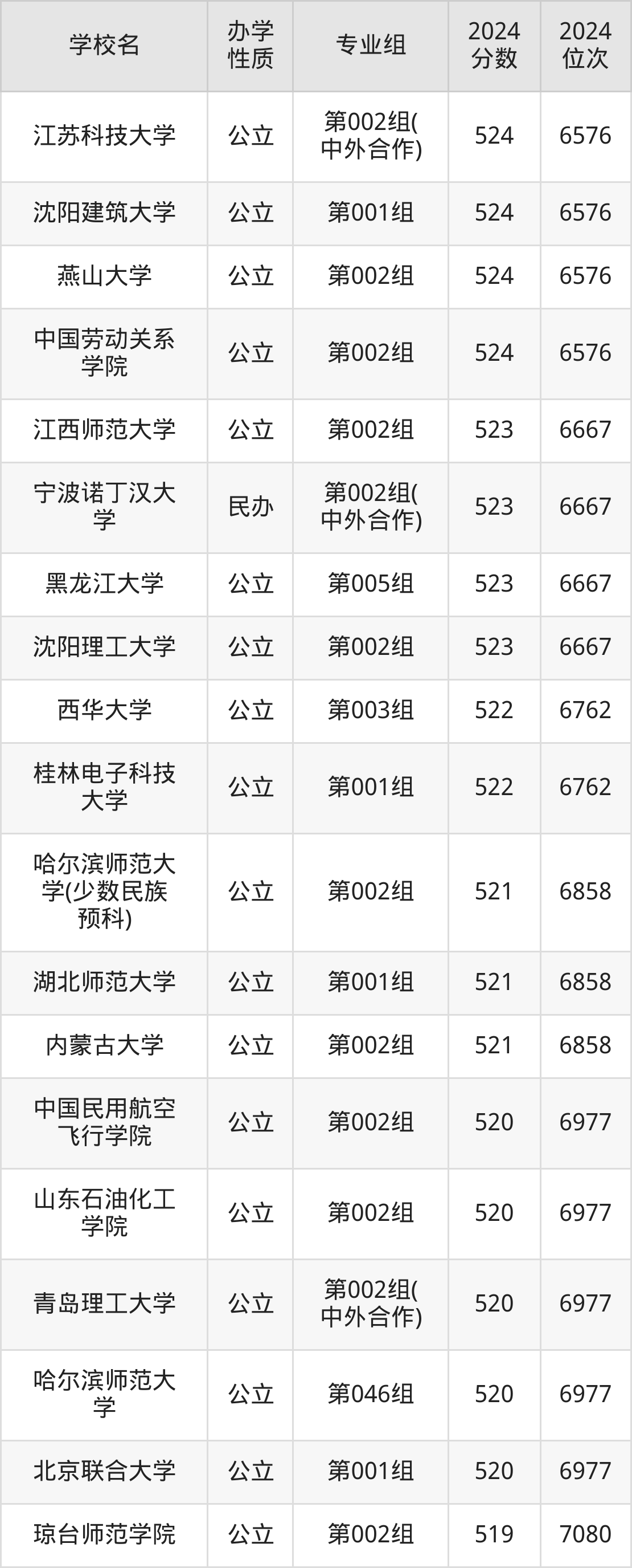 为了方便2025届考生了解自己能上哪些大学,本文也整理出了黑龙江524分左右能上的所有大学名单,供2025年考生参考。