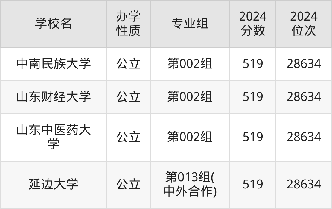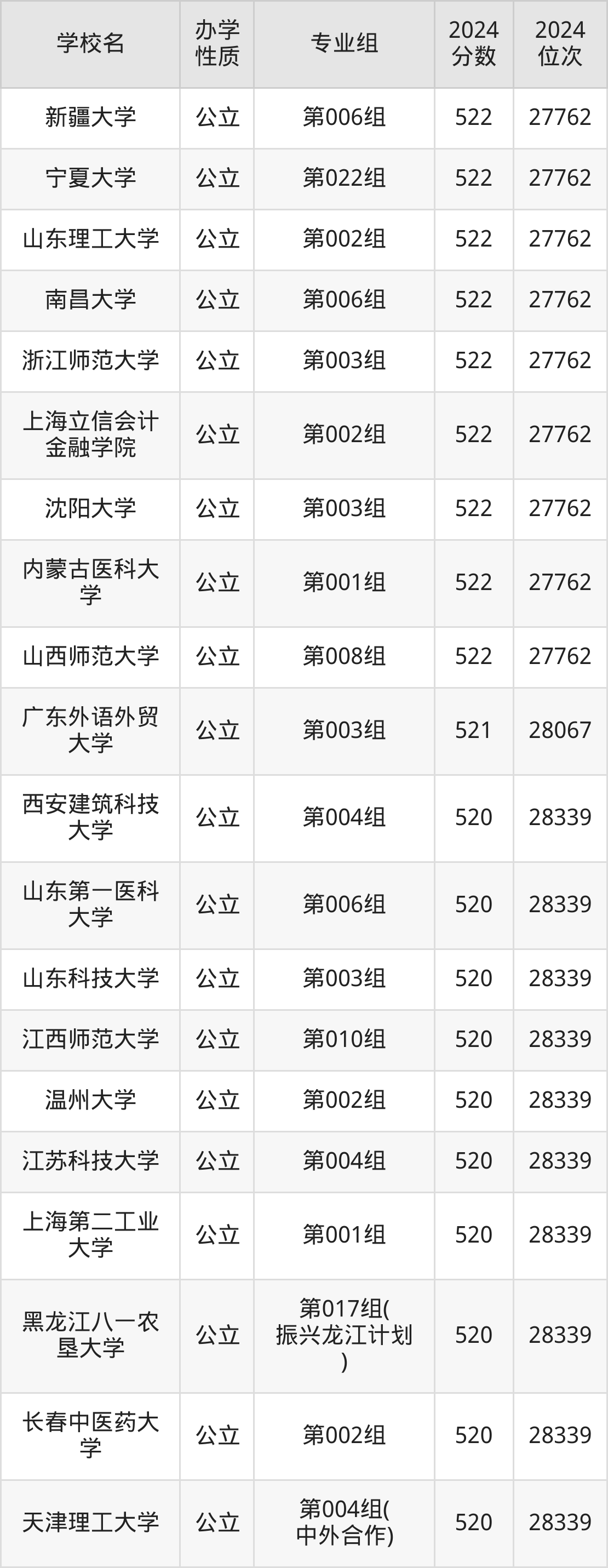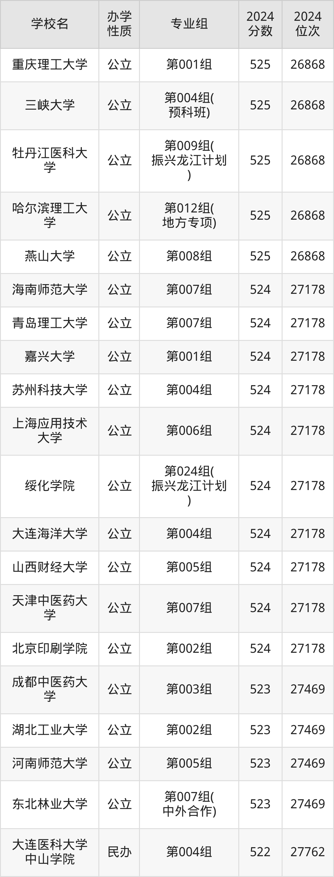 | 学校名 | 专业组 | 2024 分数 | 2024 位次 |