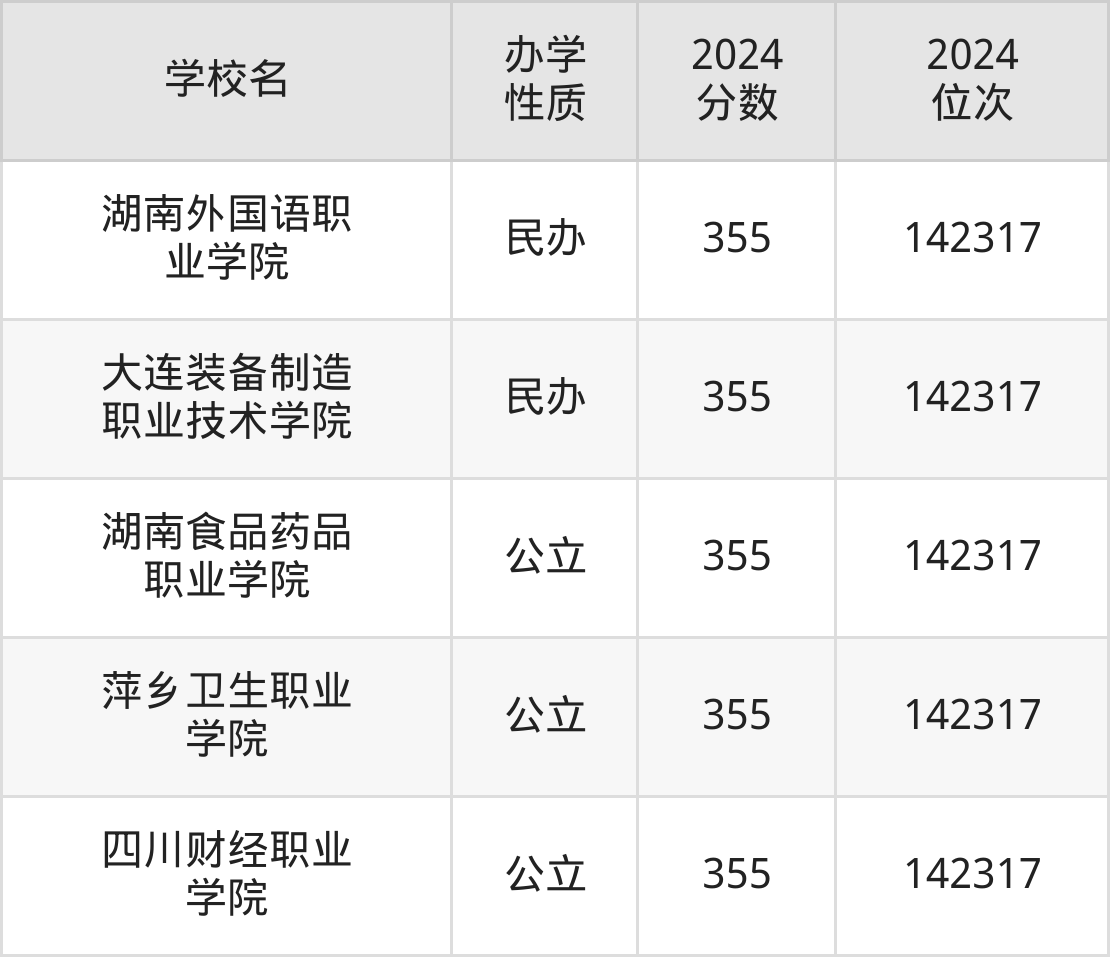 | 湖南食品药品 职业学院 | 355 | 142317 |