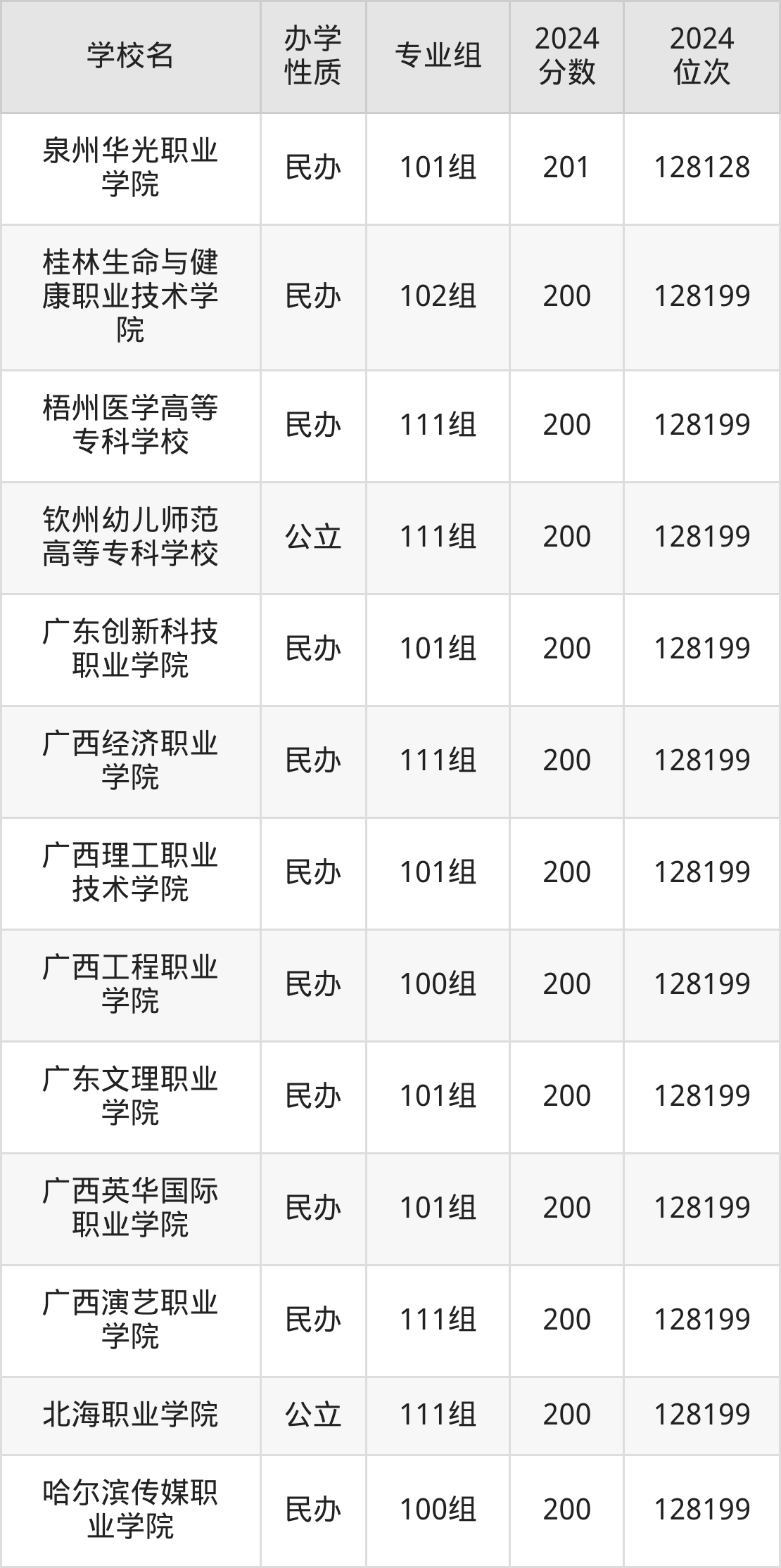 | 广西经济职业 学院 | 111组 | 200 | 128199 |