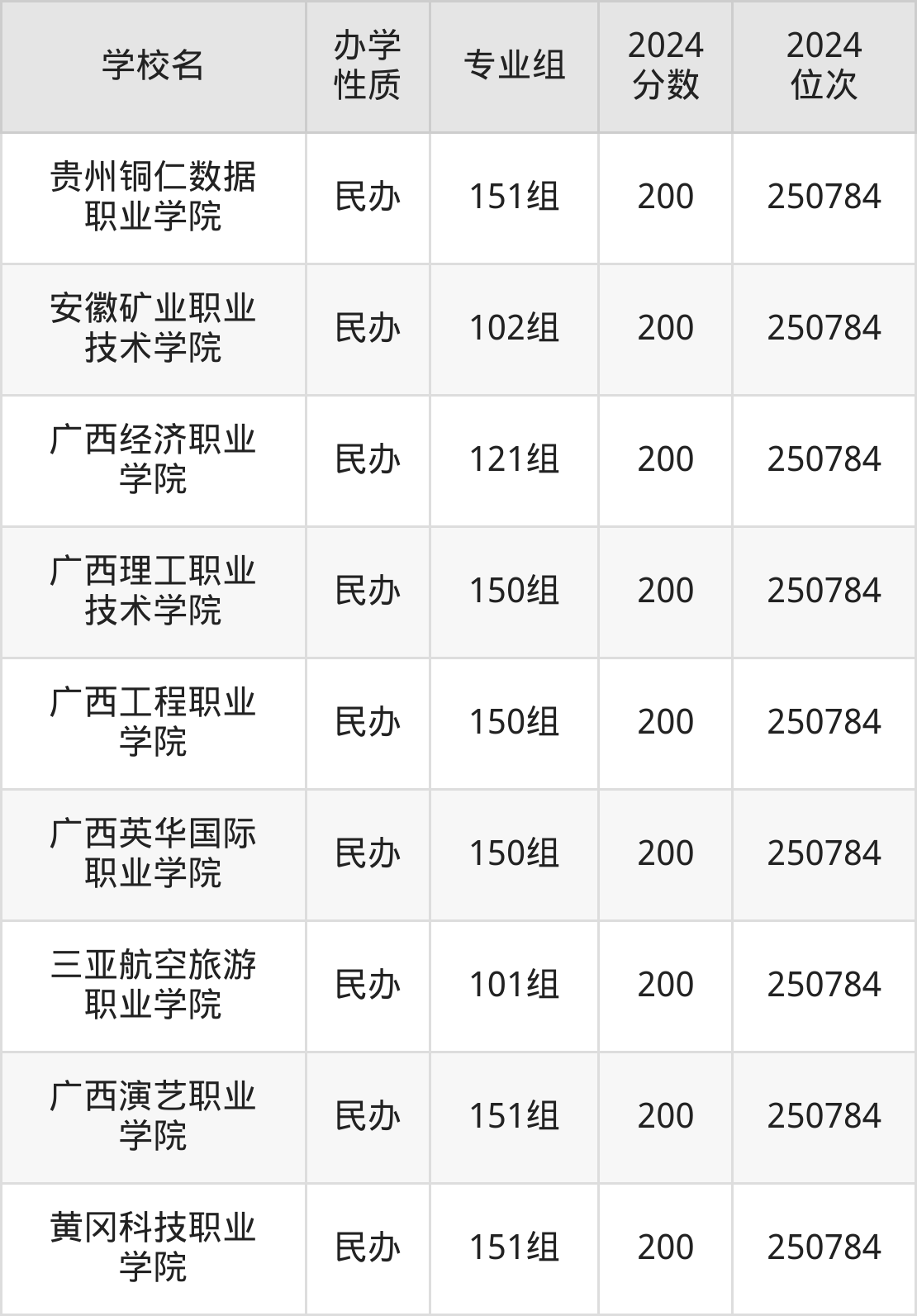 | 广西经济职业 学院 | 121组 | 200 | 250784 |
