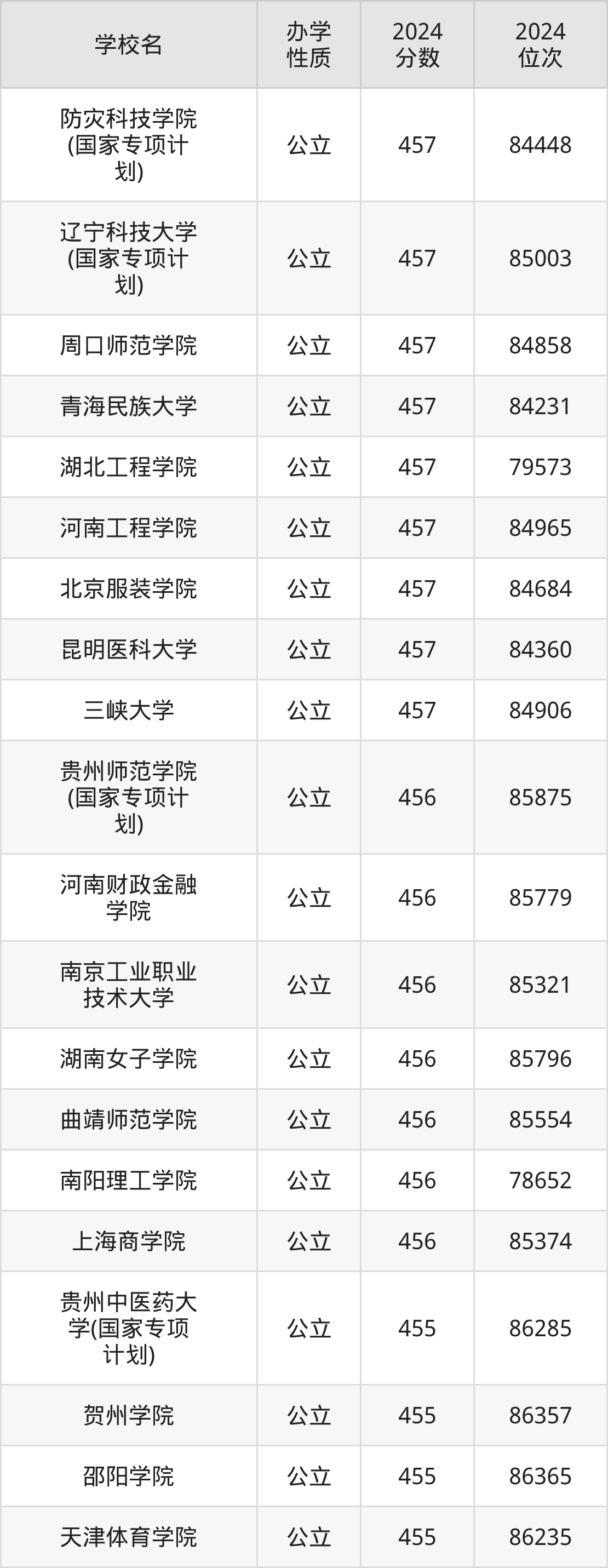 | 防灾科技学院 (国家专项计 划) | 457 | 84448 |