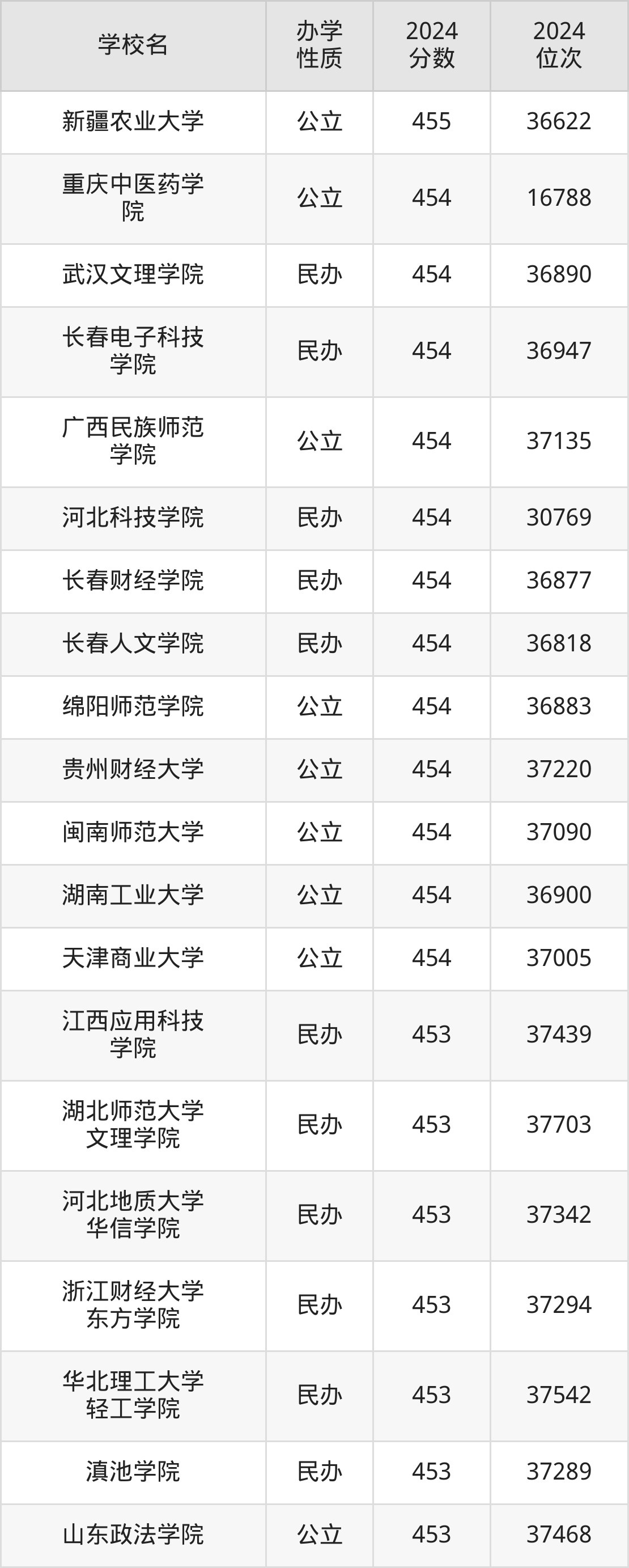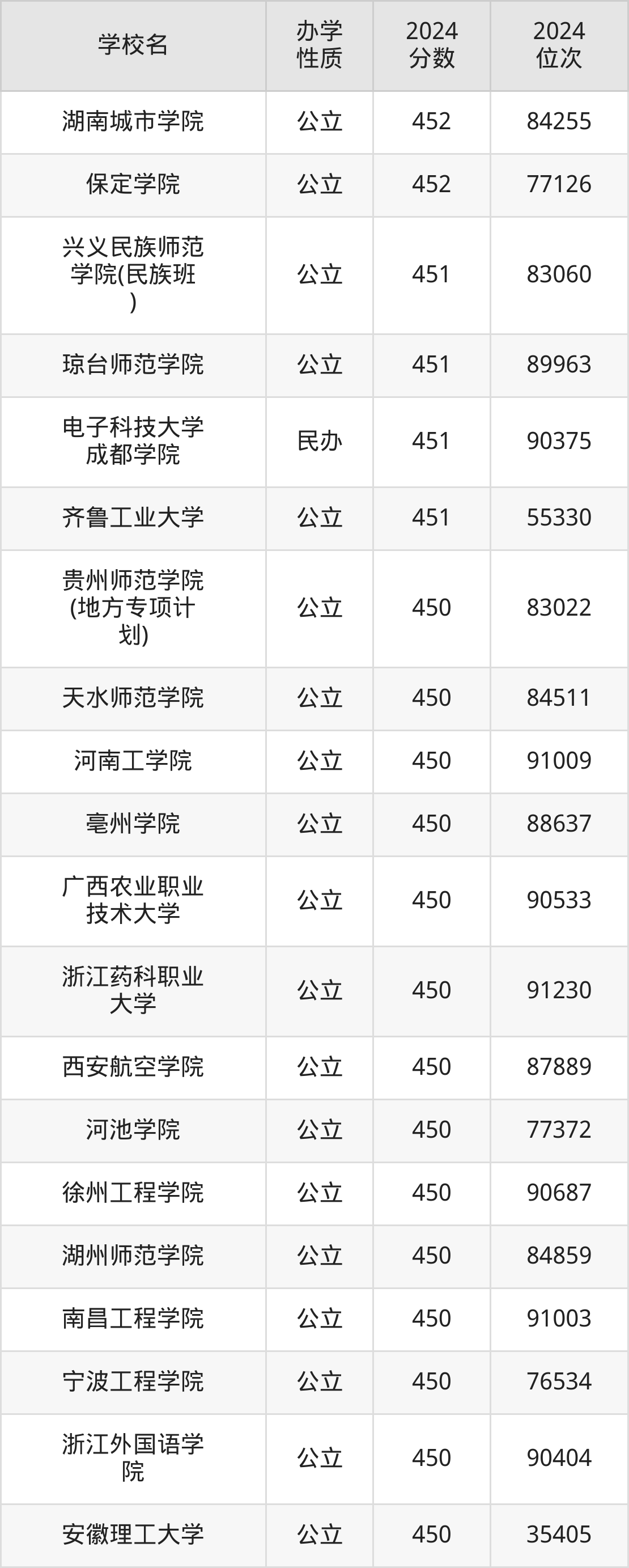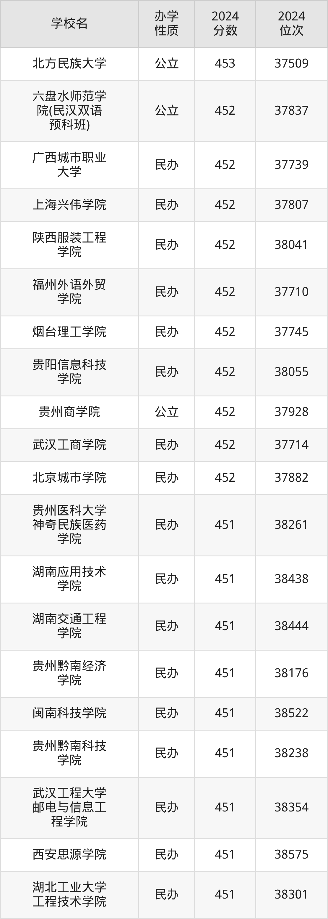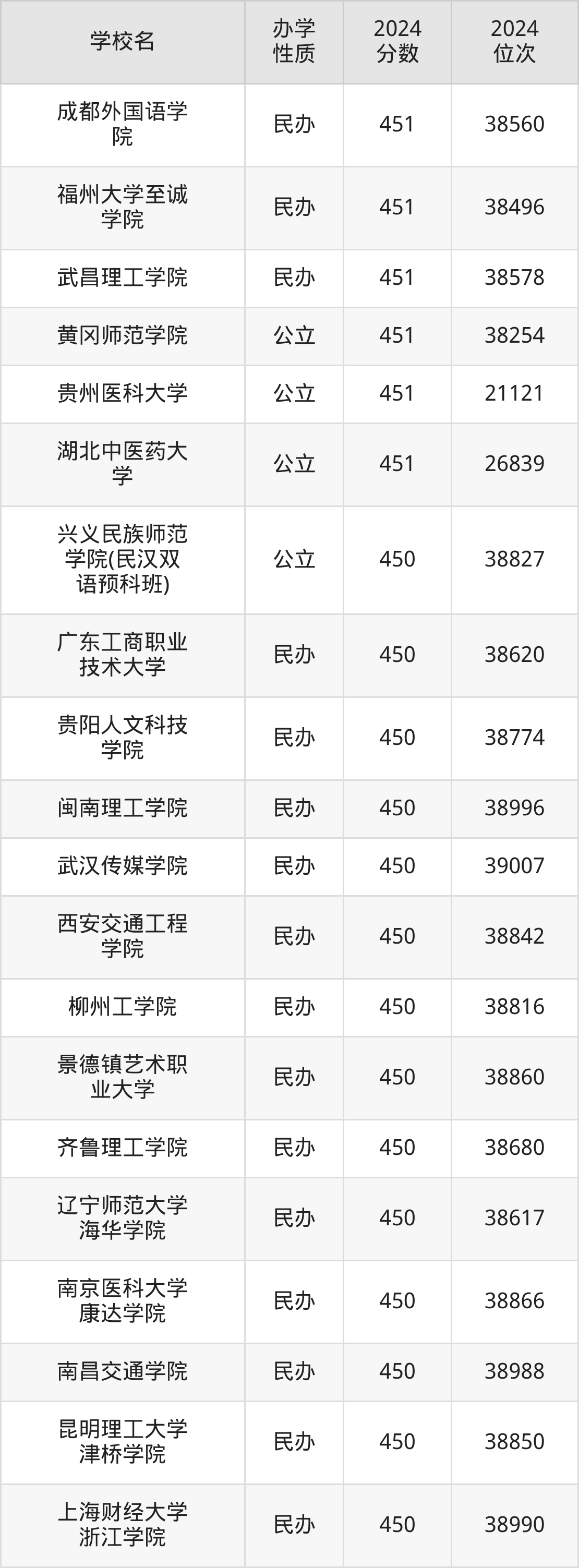 | 贵阳人文科技 学院 | 450 | 38774 |