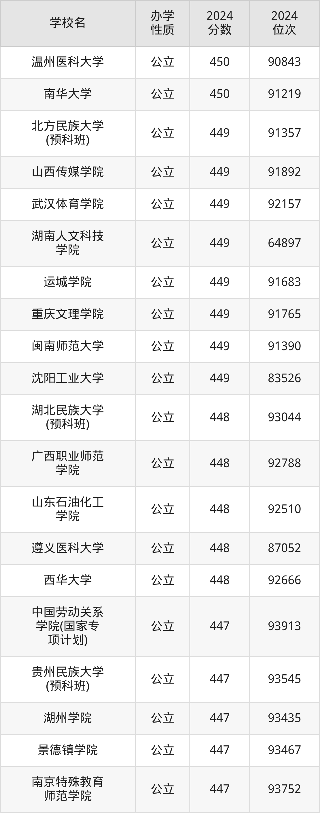 | 湖北民族大学 (预科班) | 448 | 93044 |
