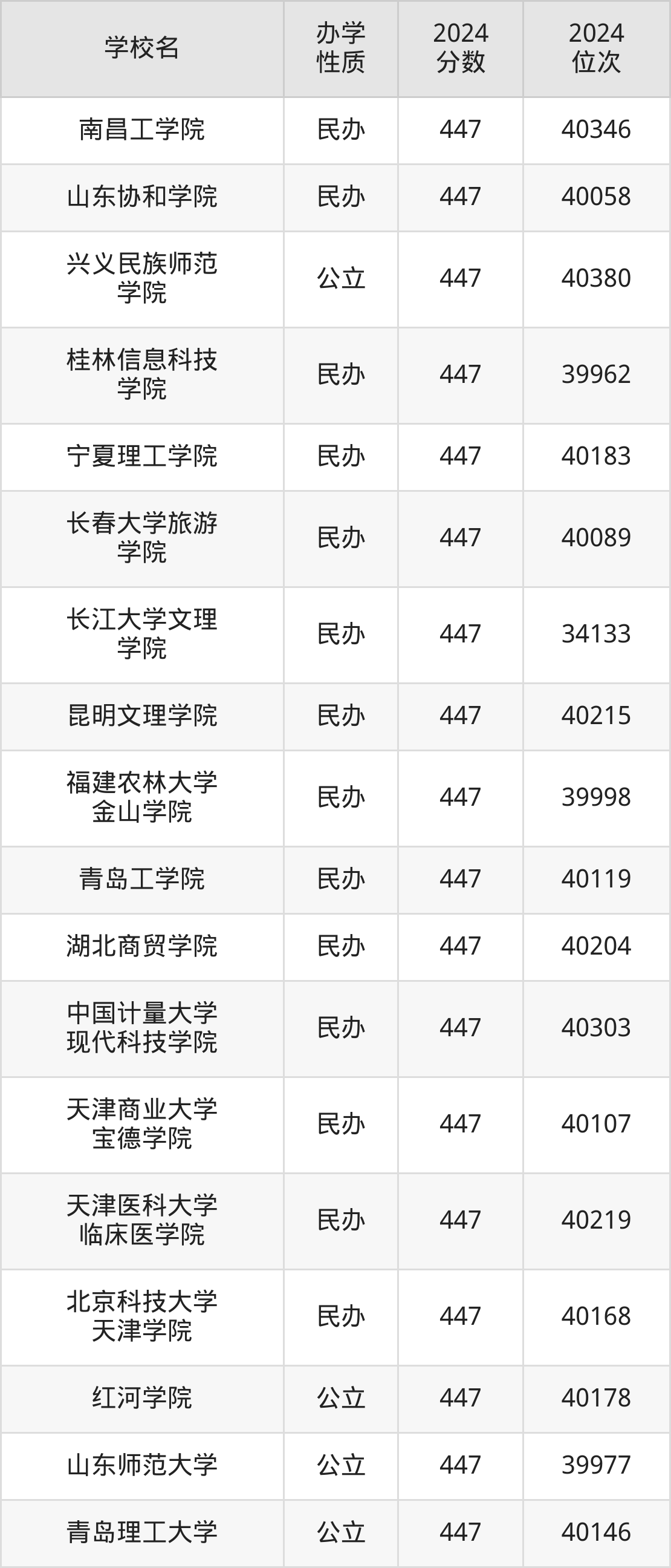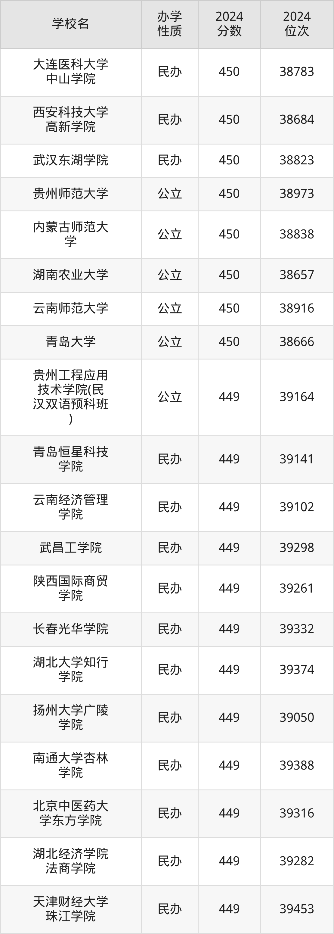 | 贵州民族大学 (预科班) | 447 | 93545 |