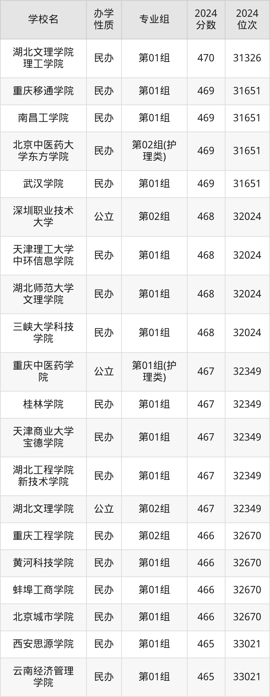 | 重庆中医药学 院 | 第01组(护 理类) | 467 | 32349 |