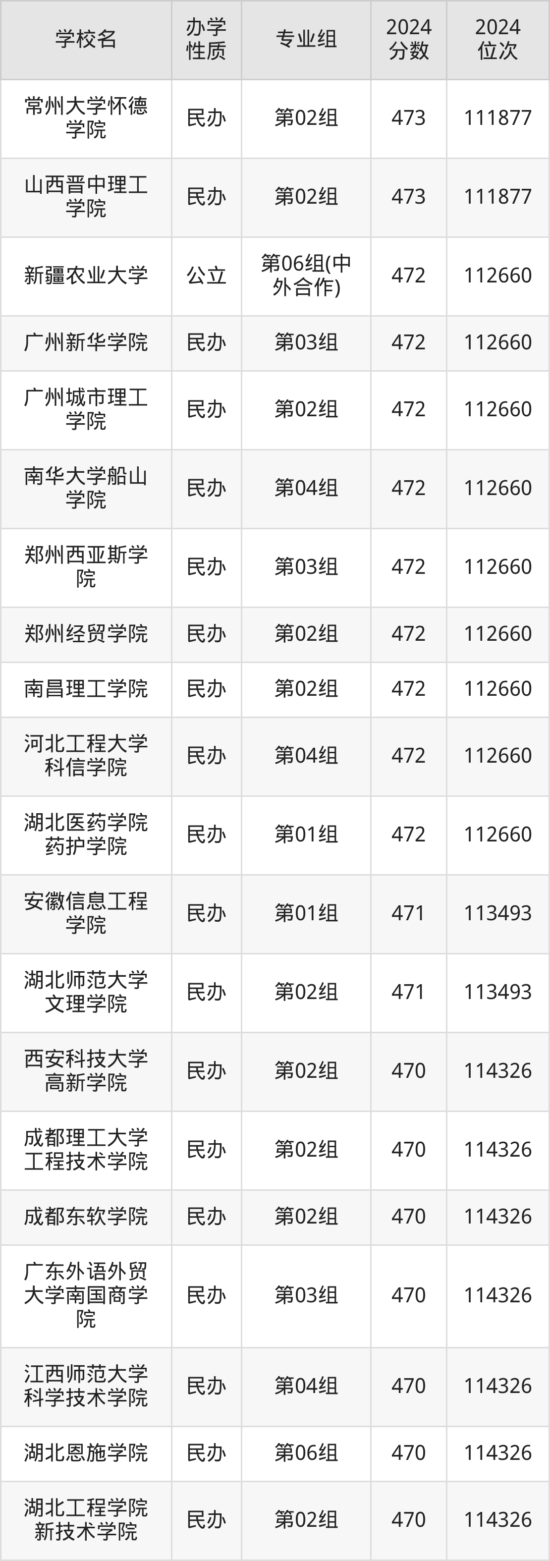 | 学校名 | 专业组 | 2024 分数 | 2024 位次 |