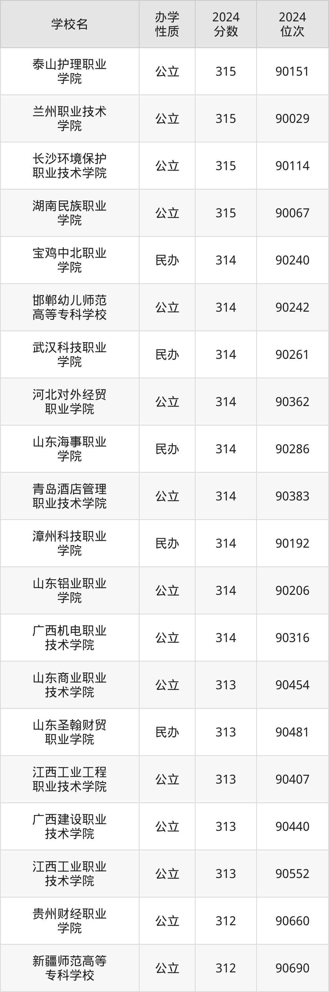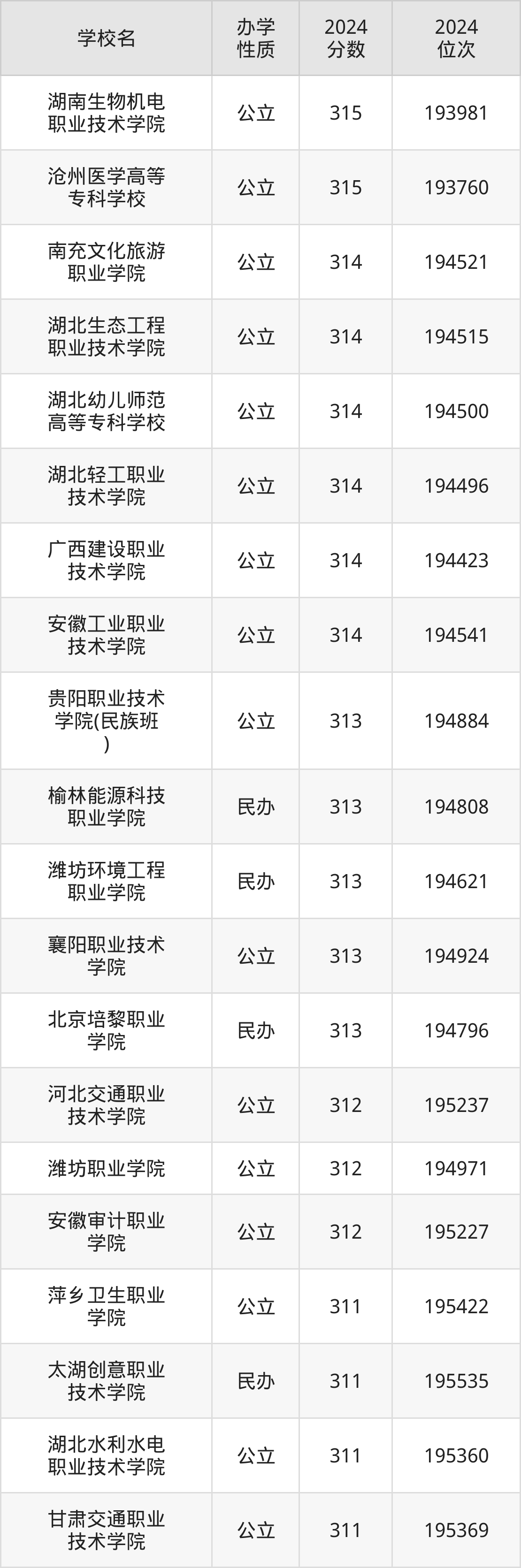 | 湖北生态工程 职业技术学院 | 314 | 194515 |