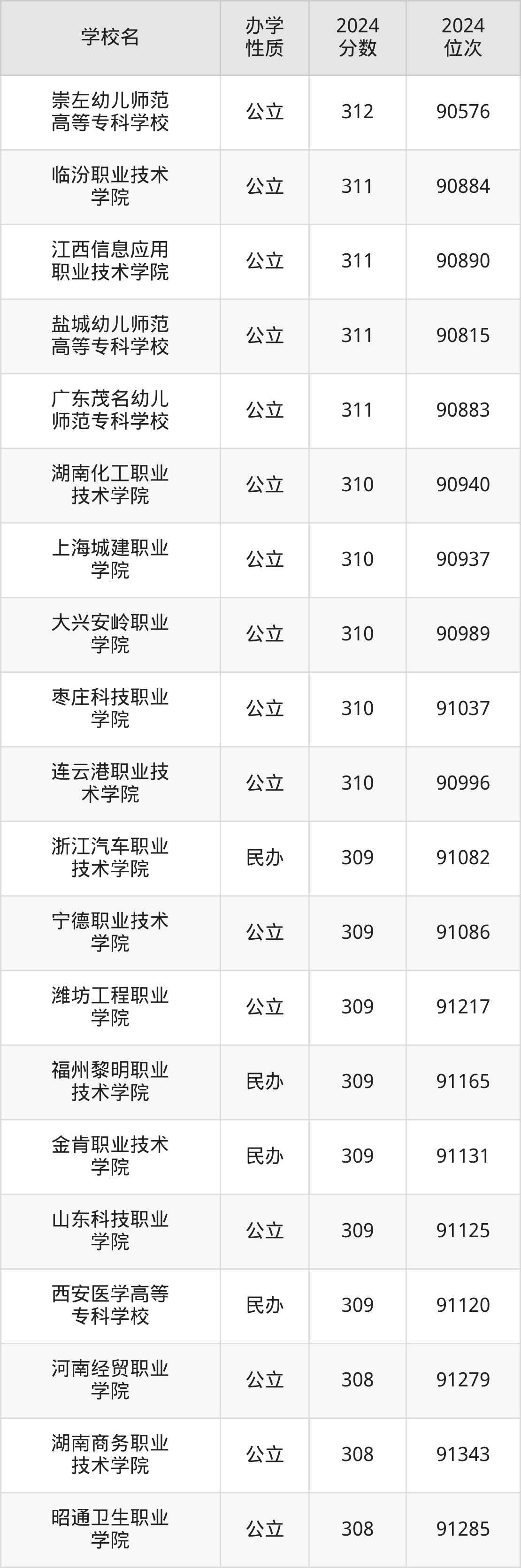 | 湖北水利水电 职业技术学院 | 311 | 195360 |
