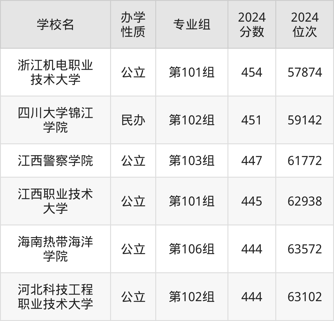 江西449分左右的考生可以上浙江机电职业技术大学、四川大学锦江学院、江西警察学院等院校。
