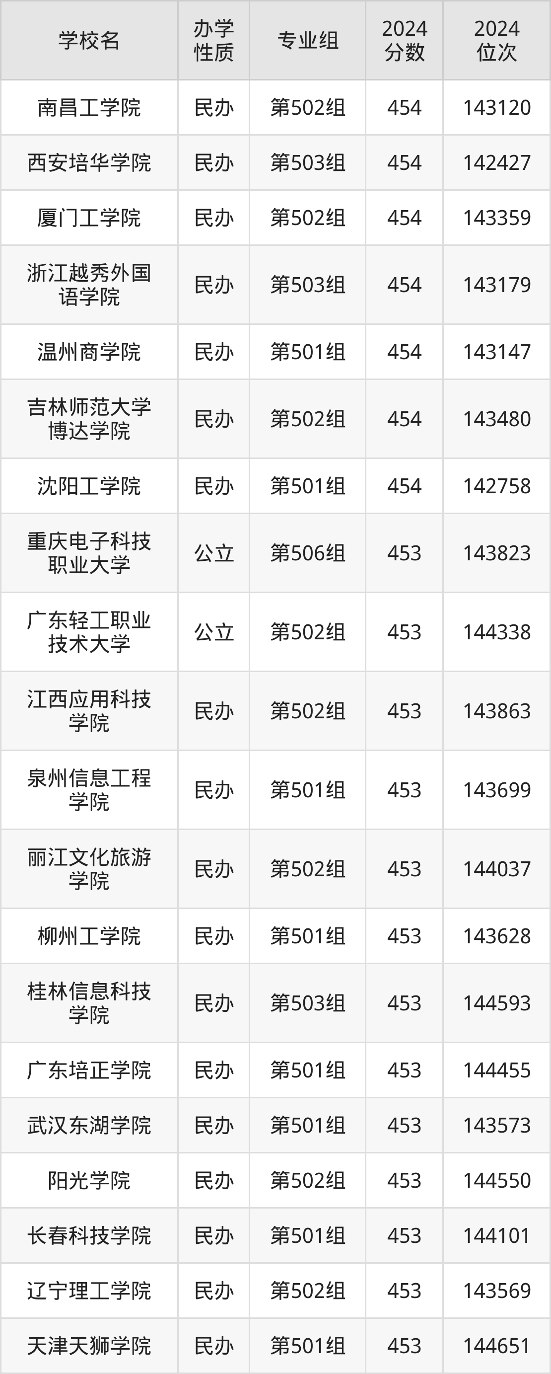 2024年江西物理类449分考生能上南昌工学院、西安培华学院、厦门工学院、浙江越秀外国语学院、温州商学院等79所二本院校,具体录取分数线及位次为: