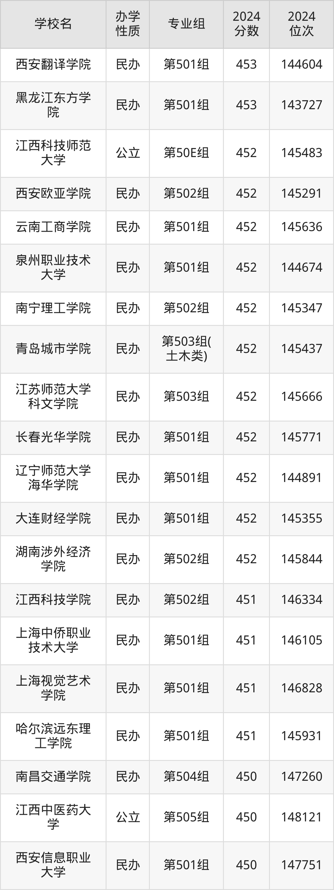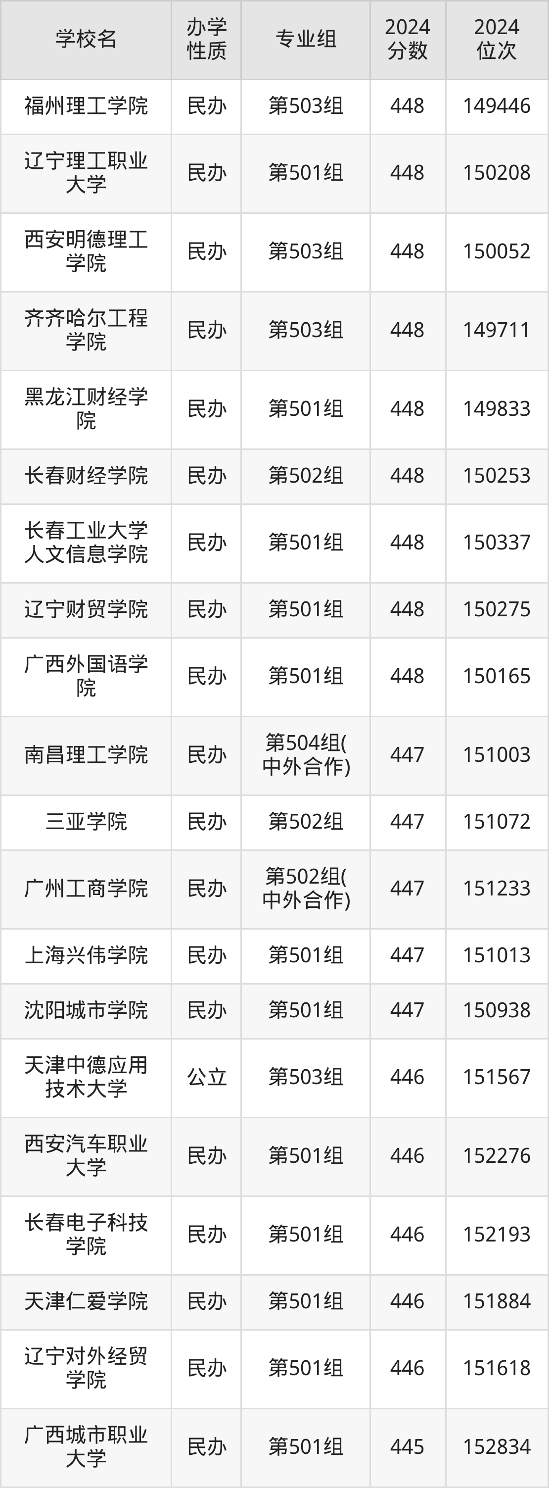 | 南昌理工学院 | 第504组( 中外合作) | 447 | 151003 |